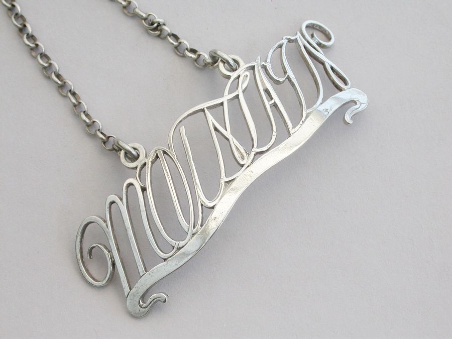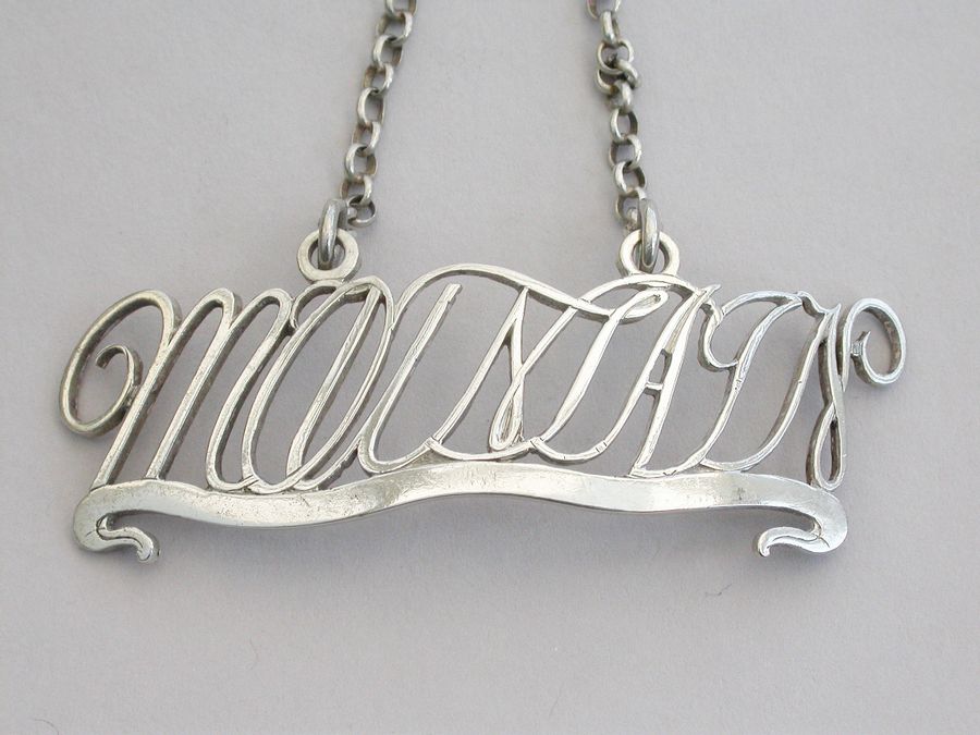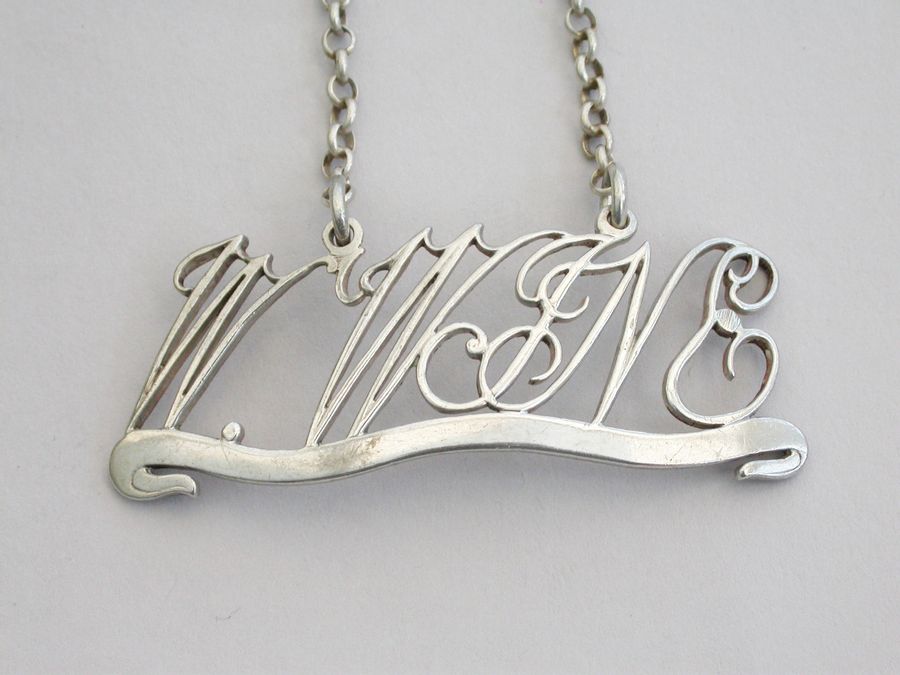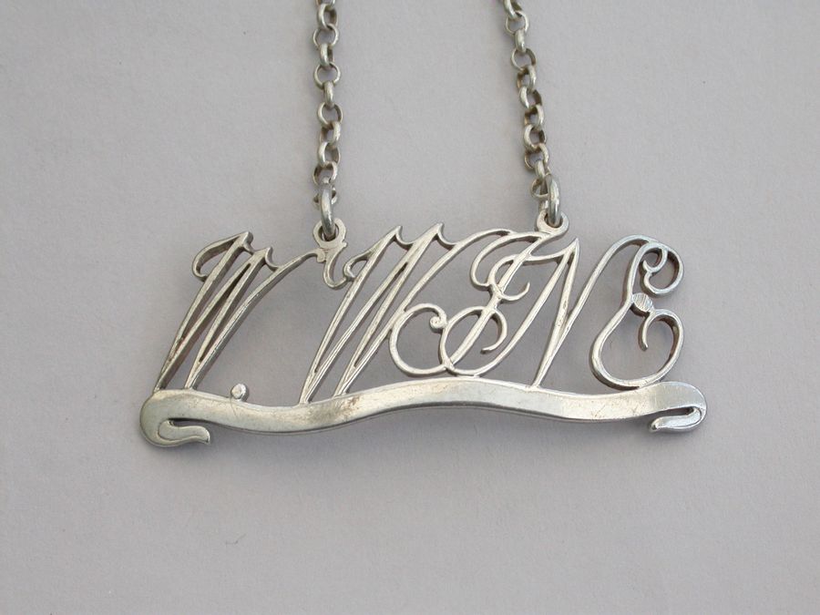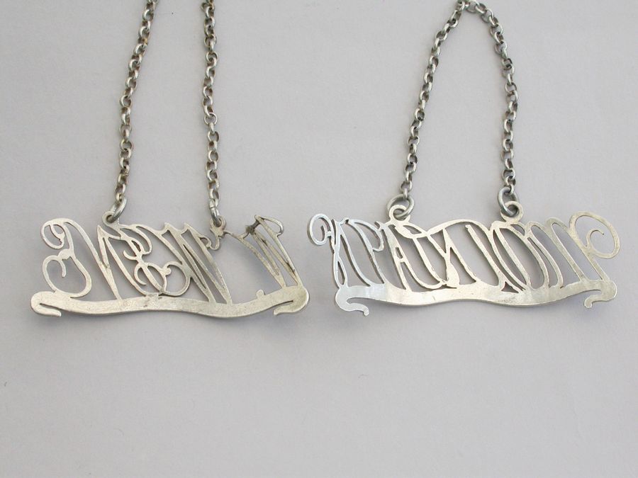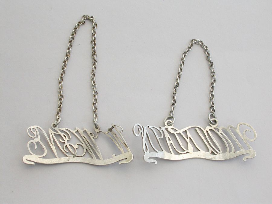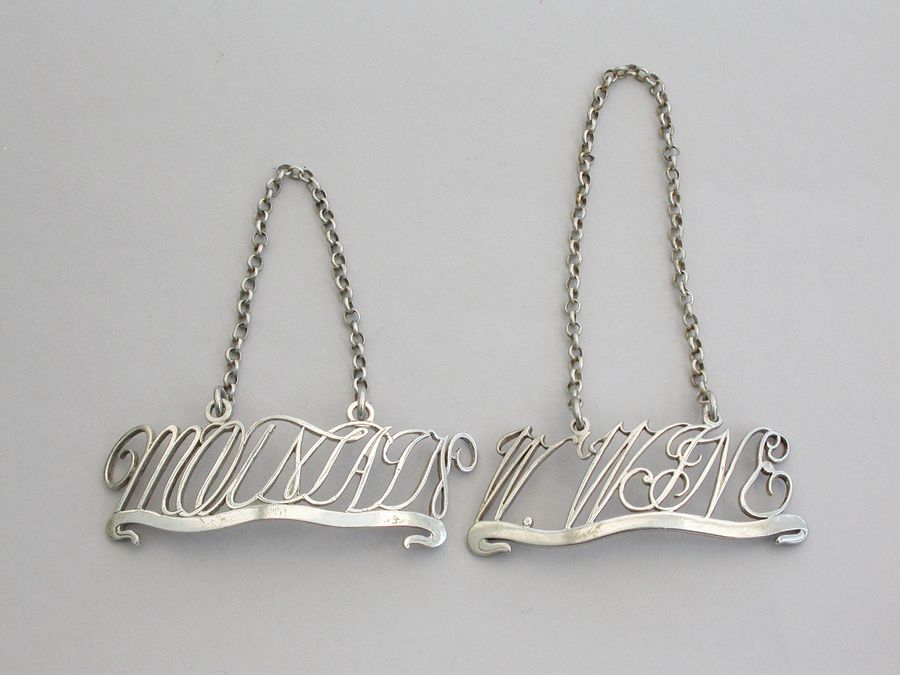 A rare and unusual pair of 18th century silver script cut-out word Wine Labels, for W.Wine and Mountain.