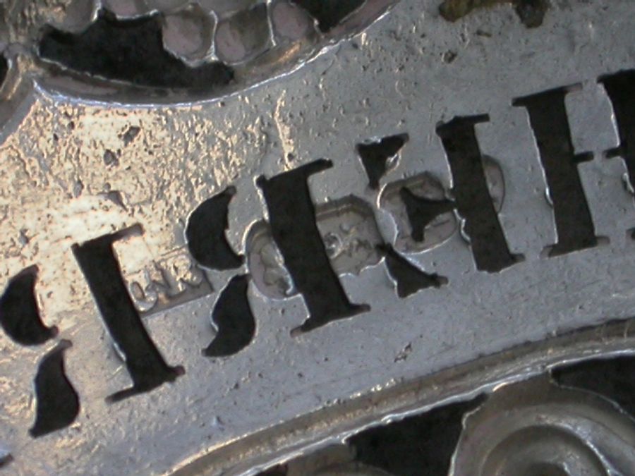 In good condition with no damage or repair, one tiny break where the two scrolls meet, bottom centre.