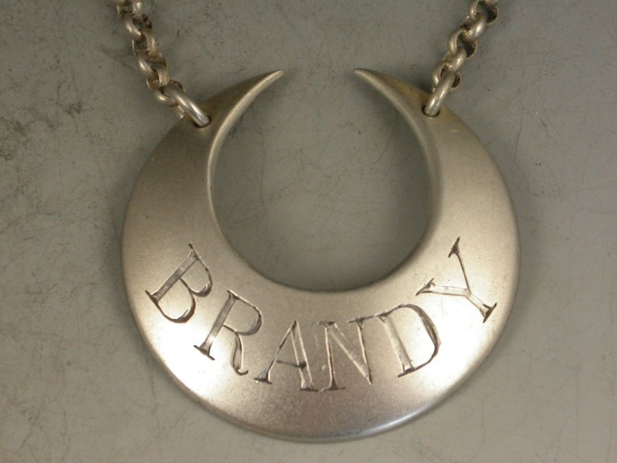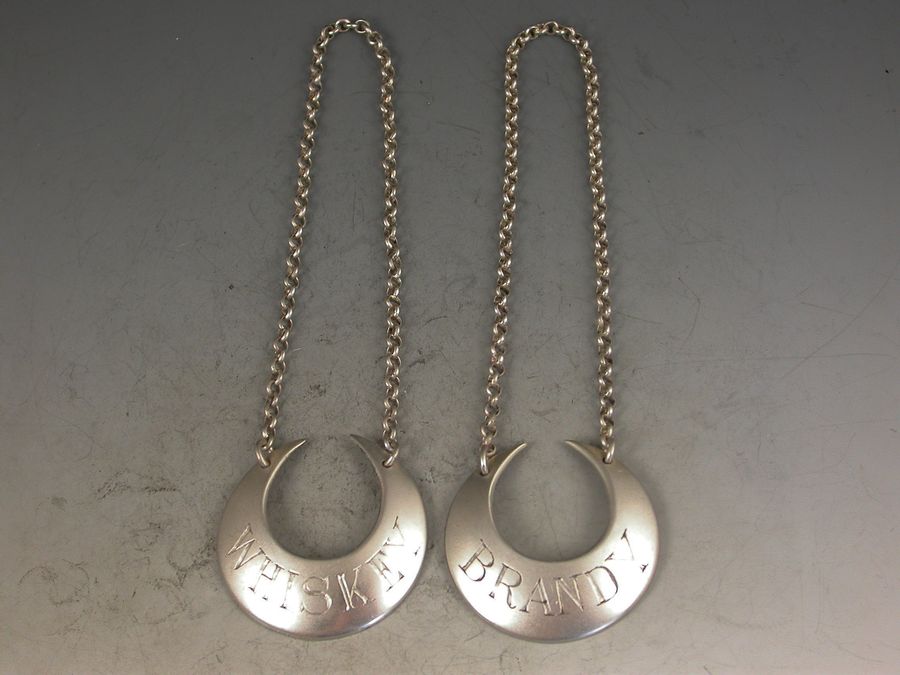Pair George IV Provincial Silver Wine Labels 'Whiskey & Brandy'