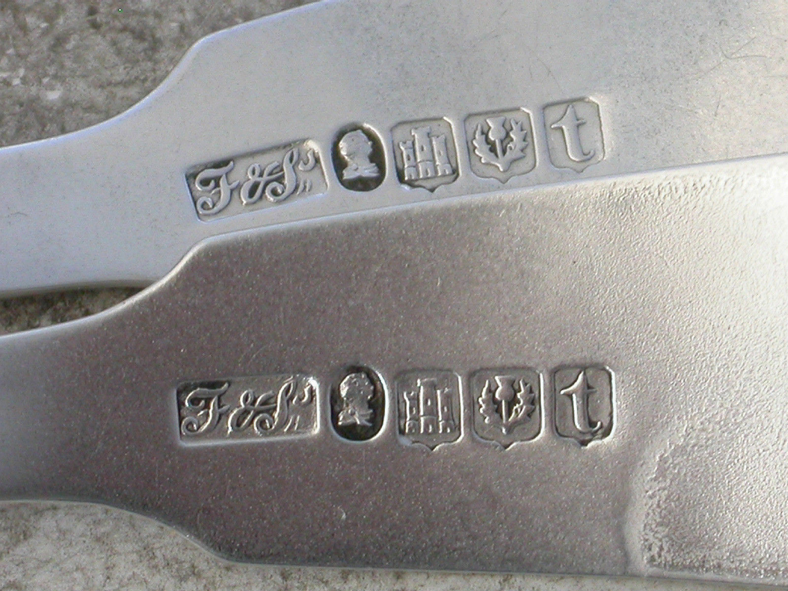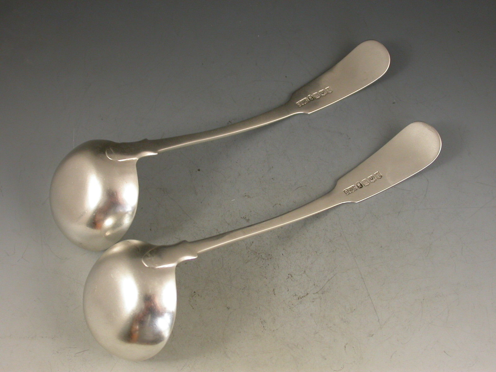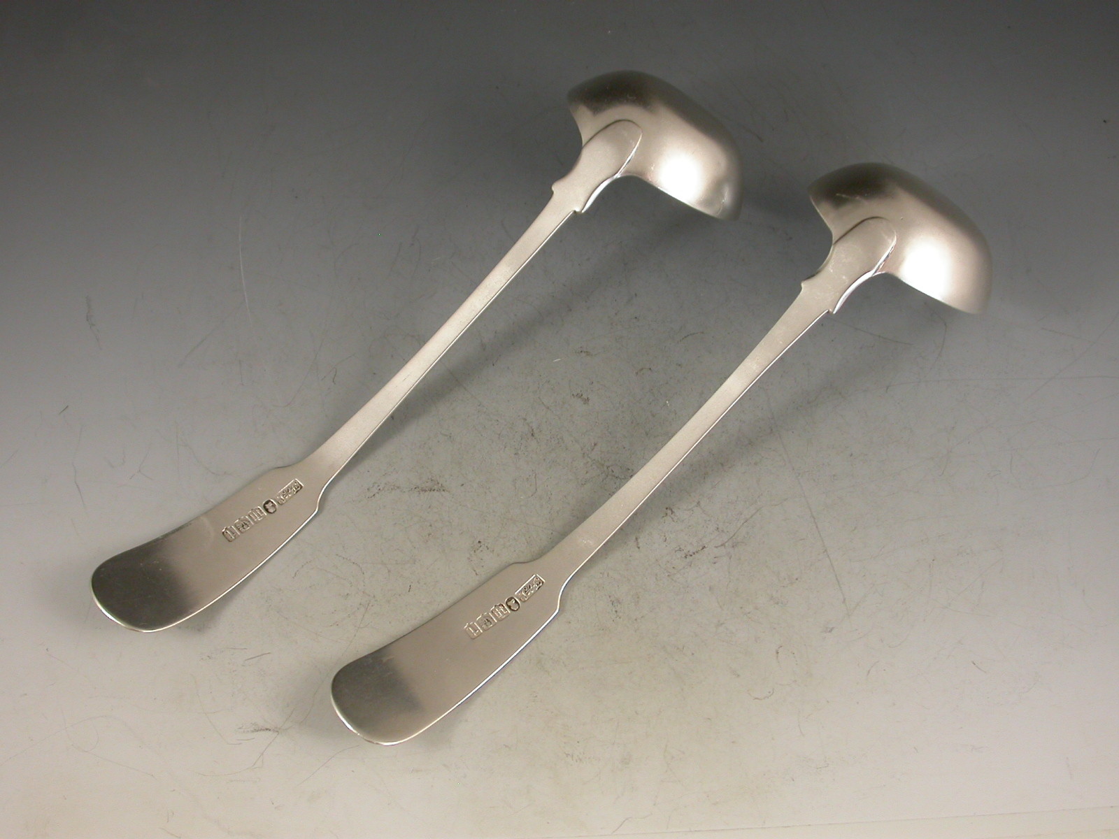Pair George IV Scottish Silver Fiddle Pattern Toddy Ladles