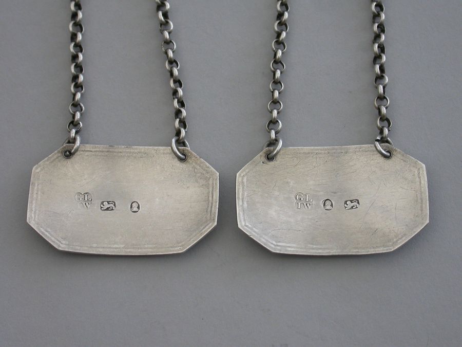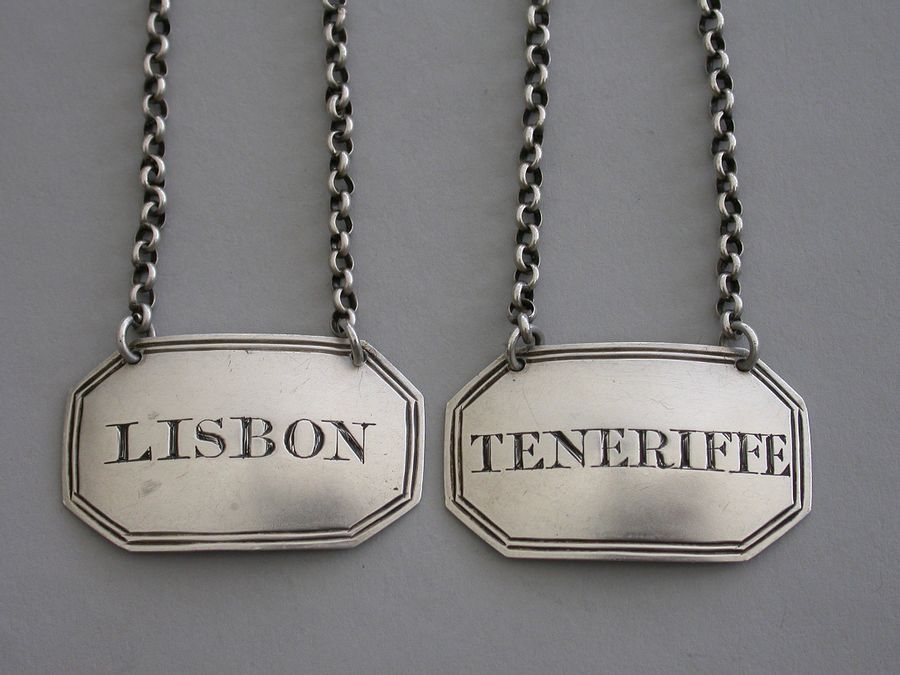 Pair Georgian Provincial Silver Wine Labels 'Lisbon & Teneriffe'