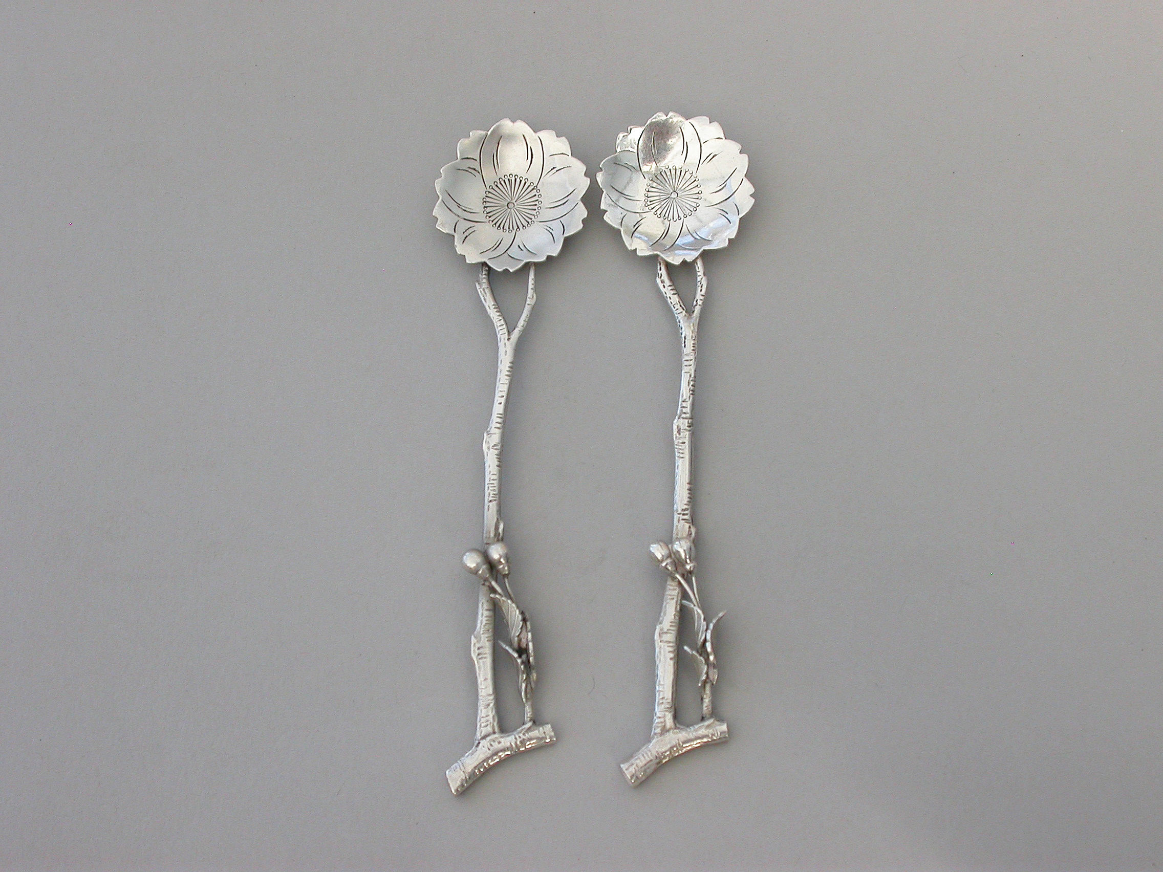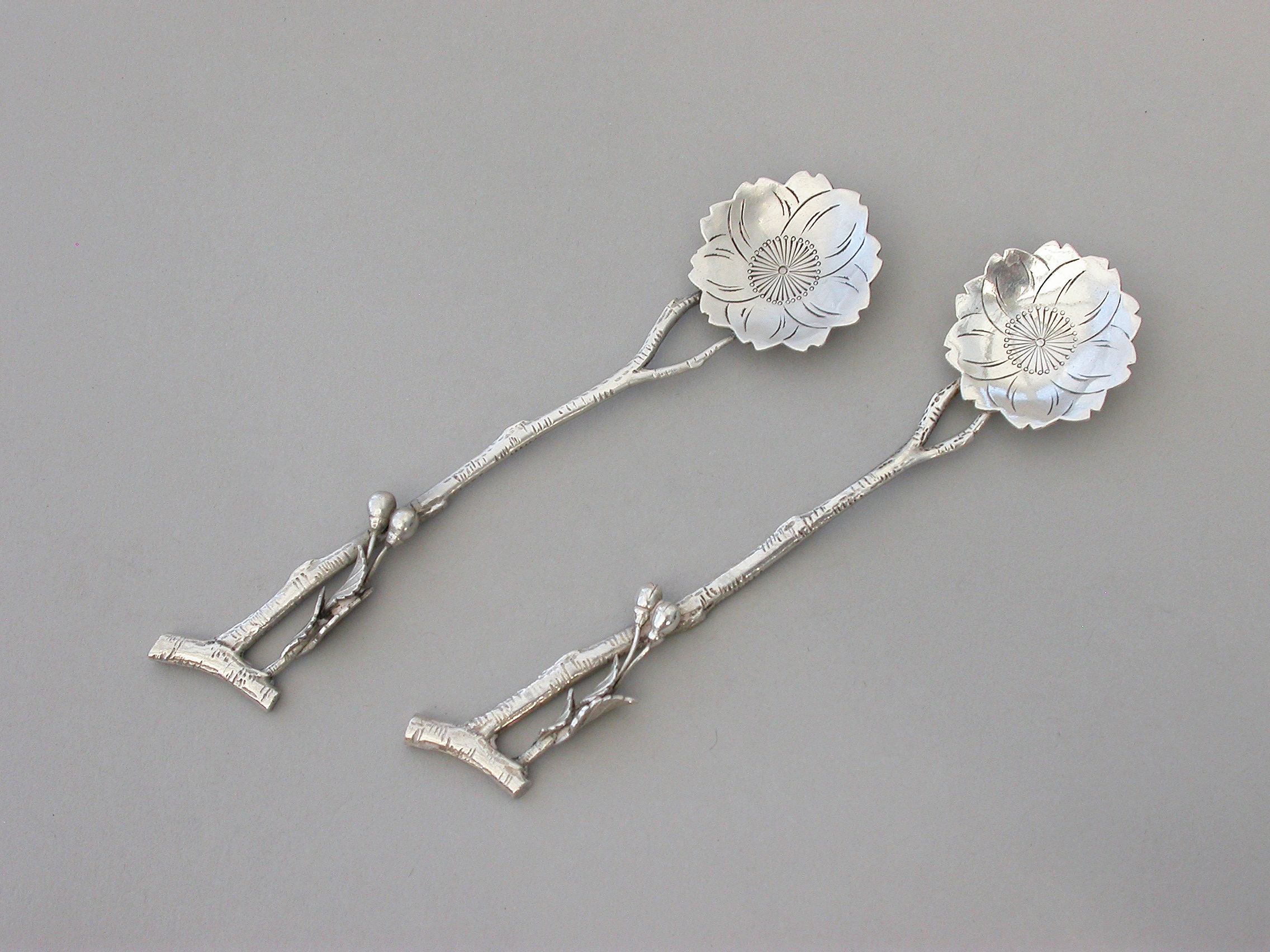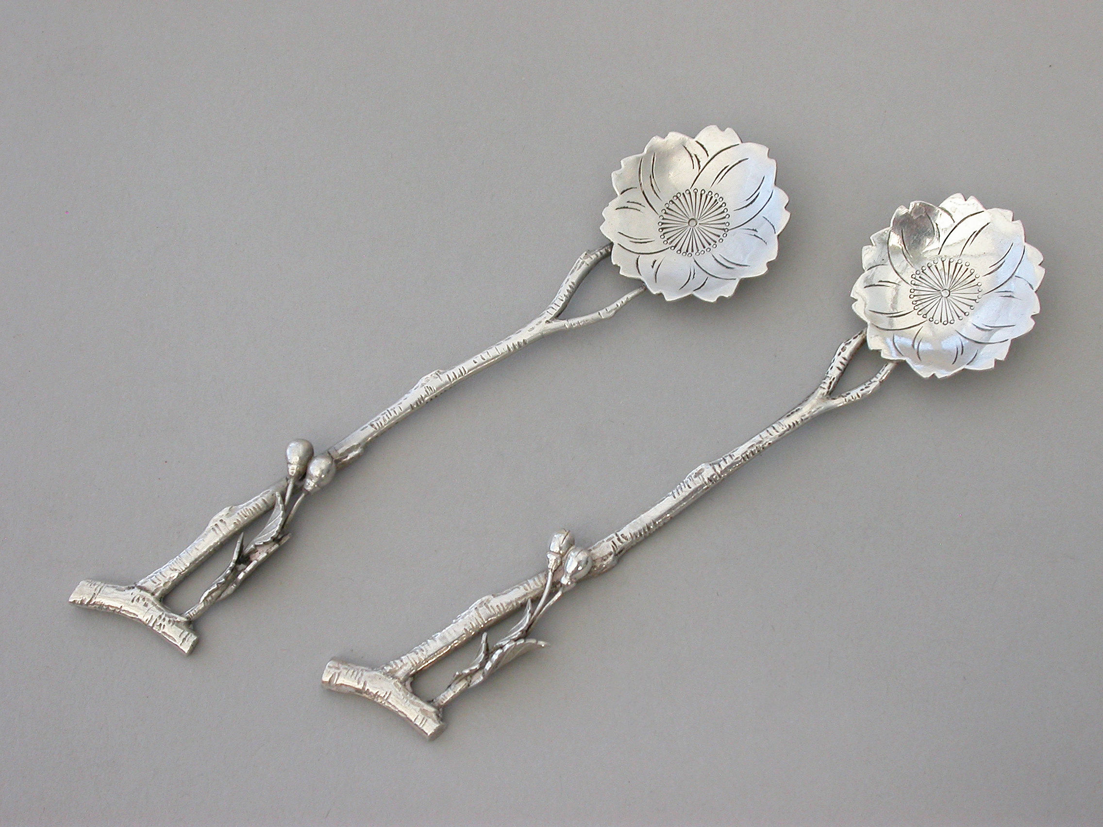 Pair Late 19th Century Imported Japanese Silver Naturalistic Teaspoons