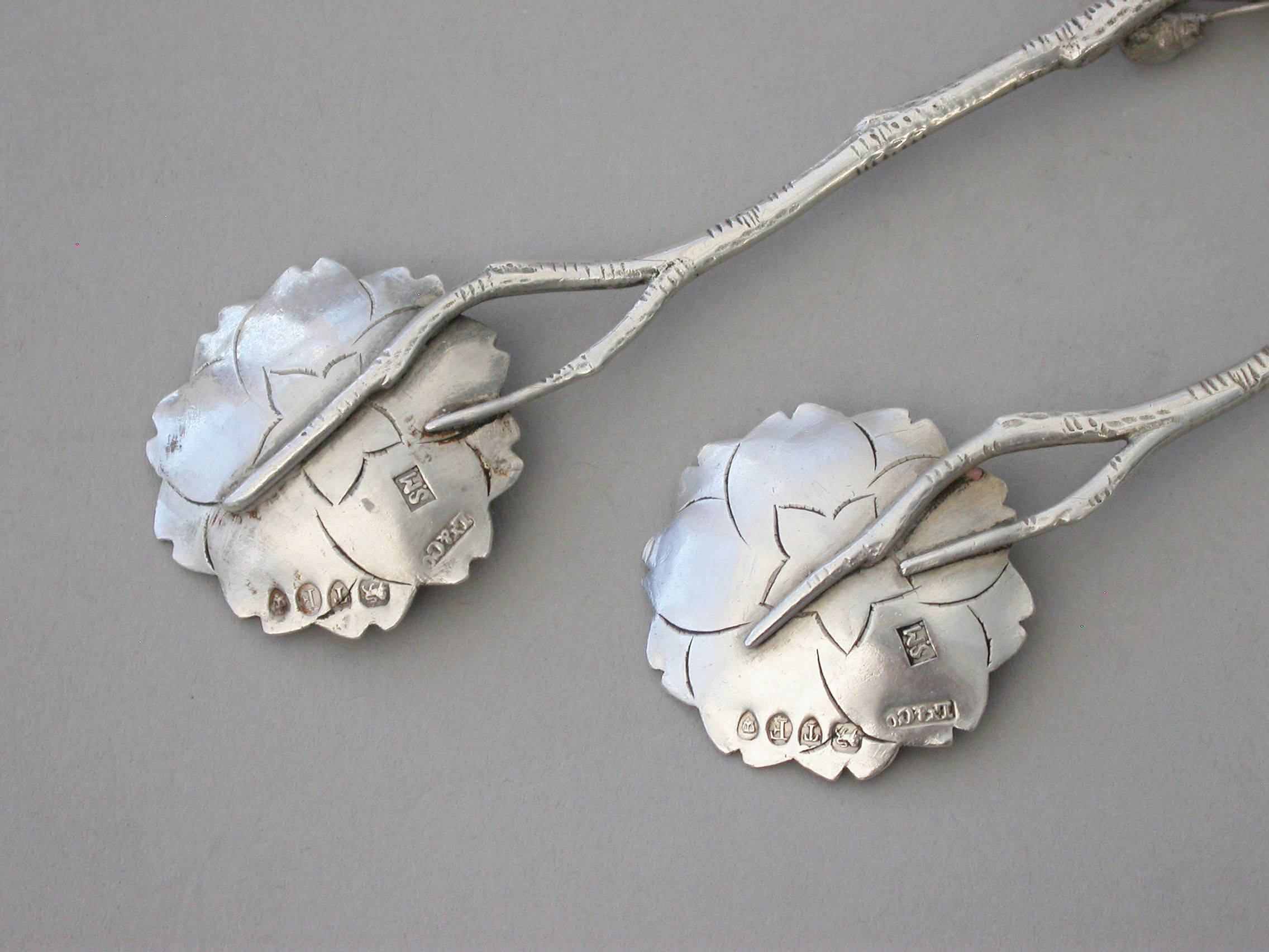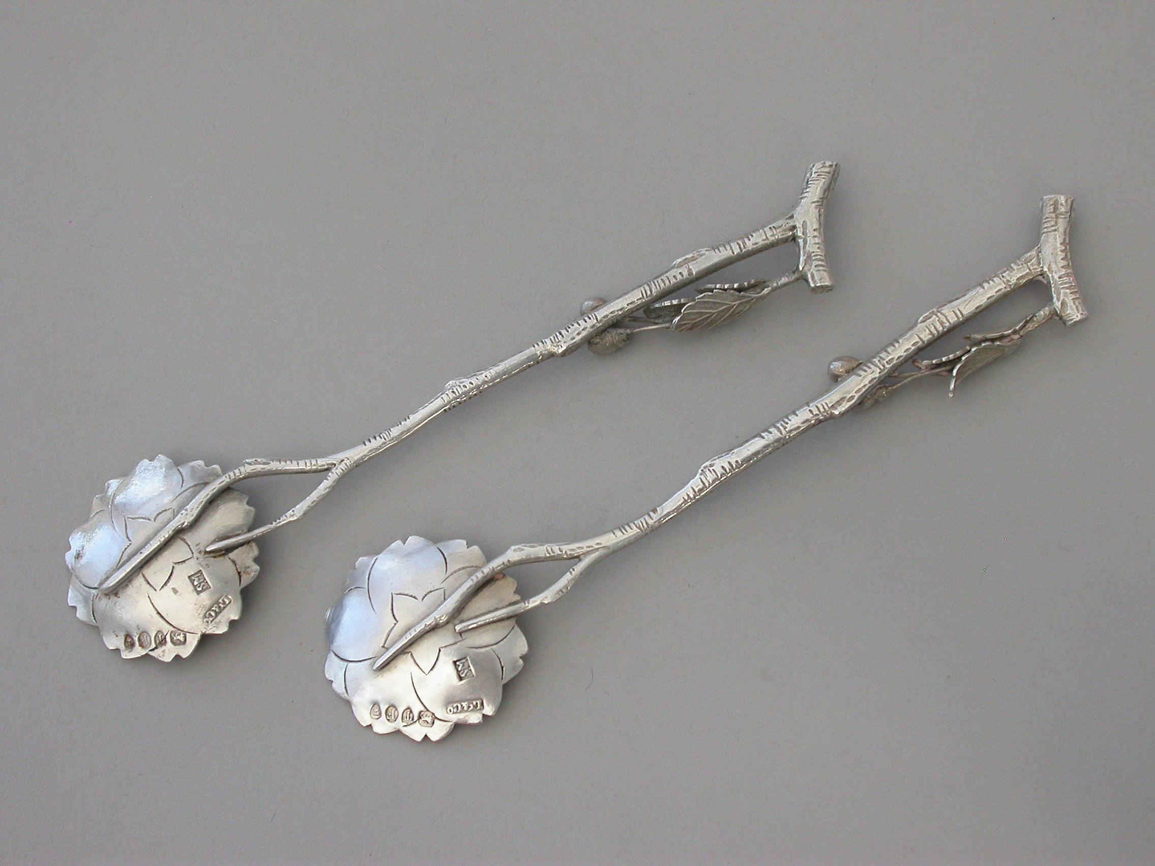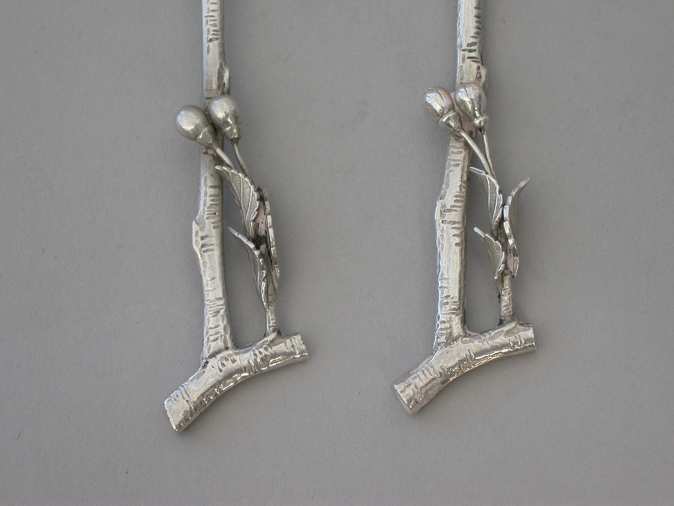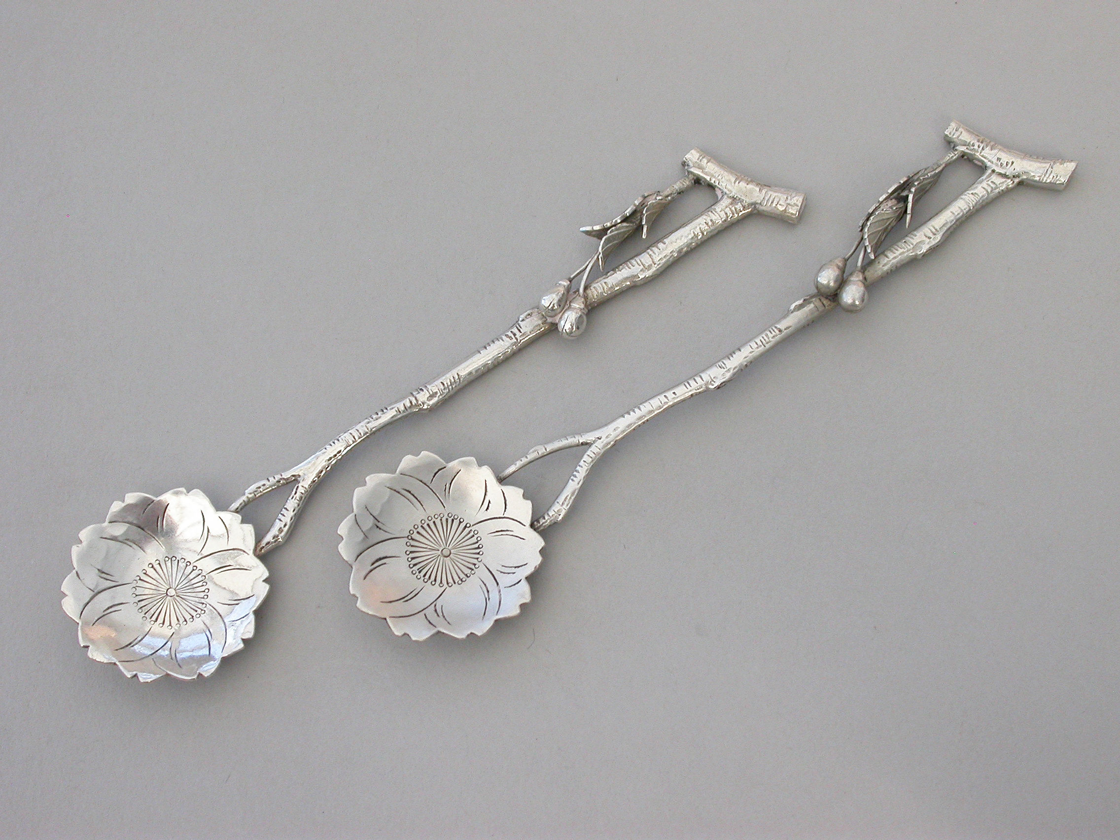 Pair Late 19th Century Imported Japanese Silver Naturalistic Teaspoons