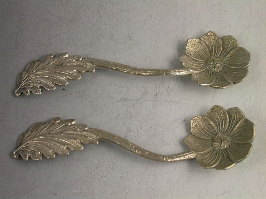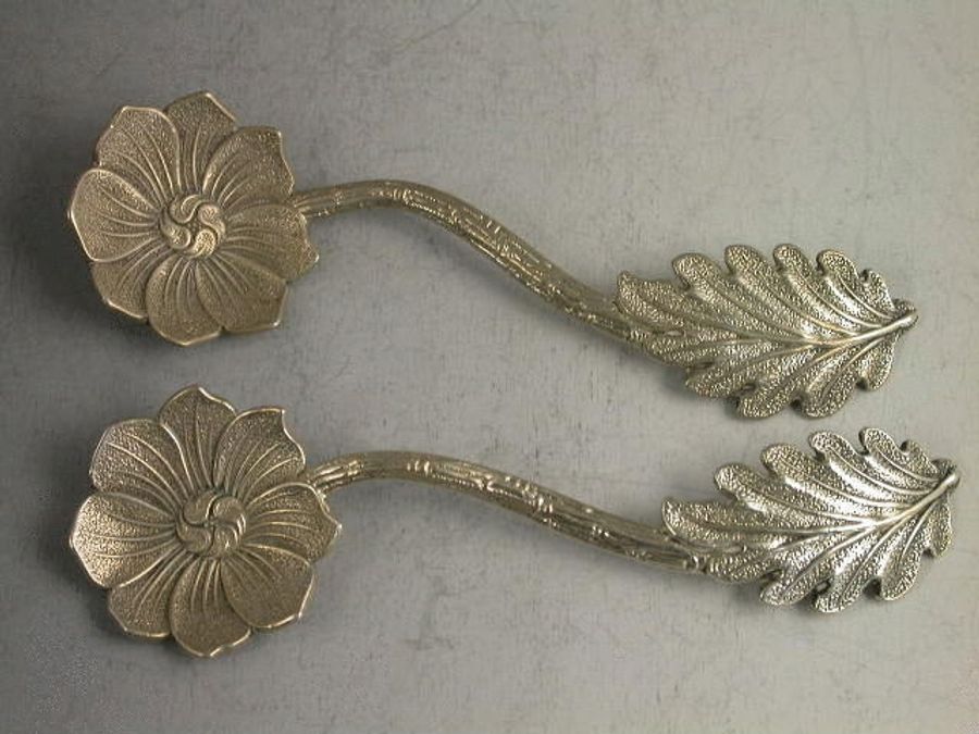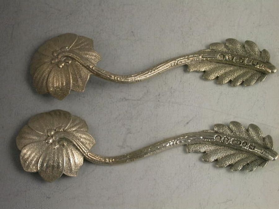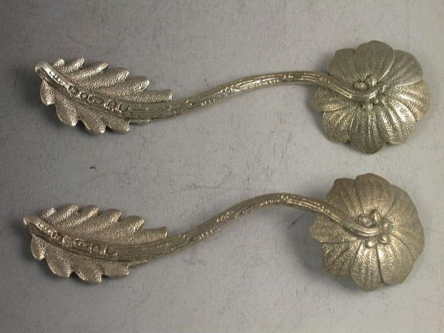 A good pair of early Victorian cast silver Salt Spoons naturalistically formed as flower heads with leaf handles to the stems.