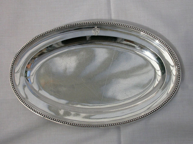 The Garrard Ledgers of 1781 detail - ""26 oval beaded Dishes @ 6/9d per oz, and to engraving double arms and miter on each very neatly @ 3/=."