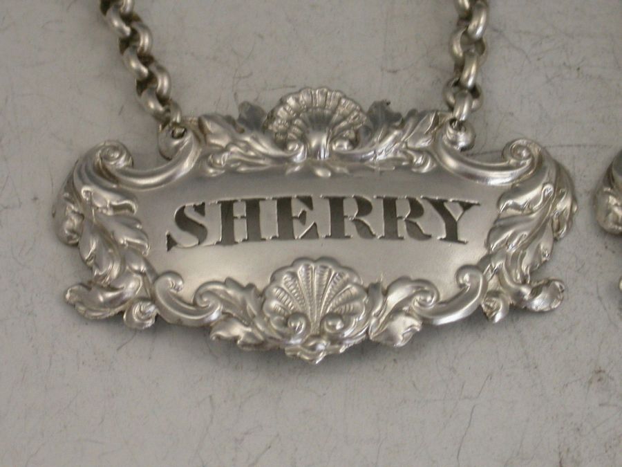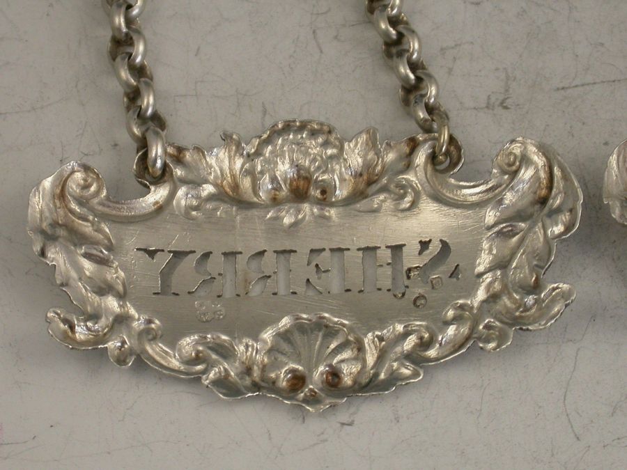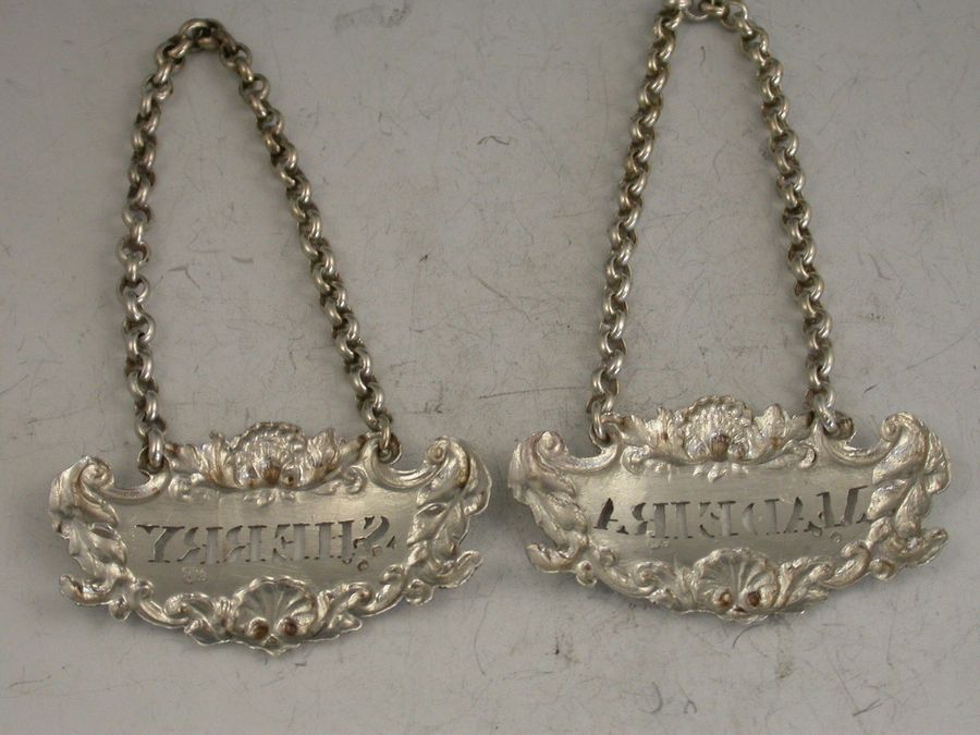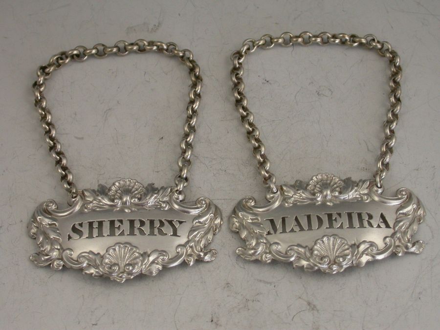 Pair Victorian Antique Provincial Silver Wine Labels 'Sherry & Madeira'