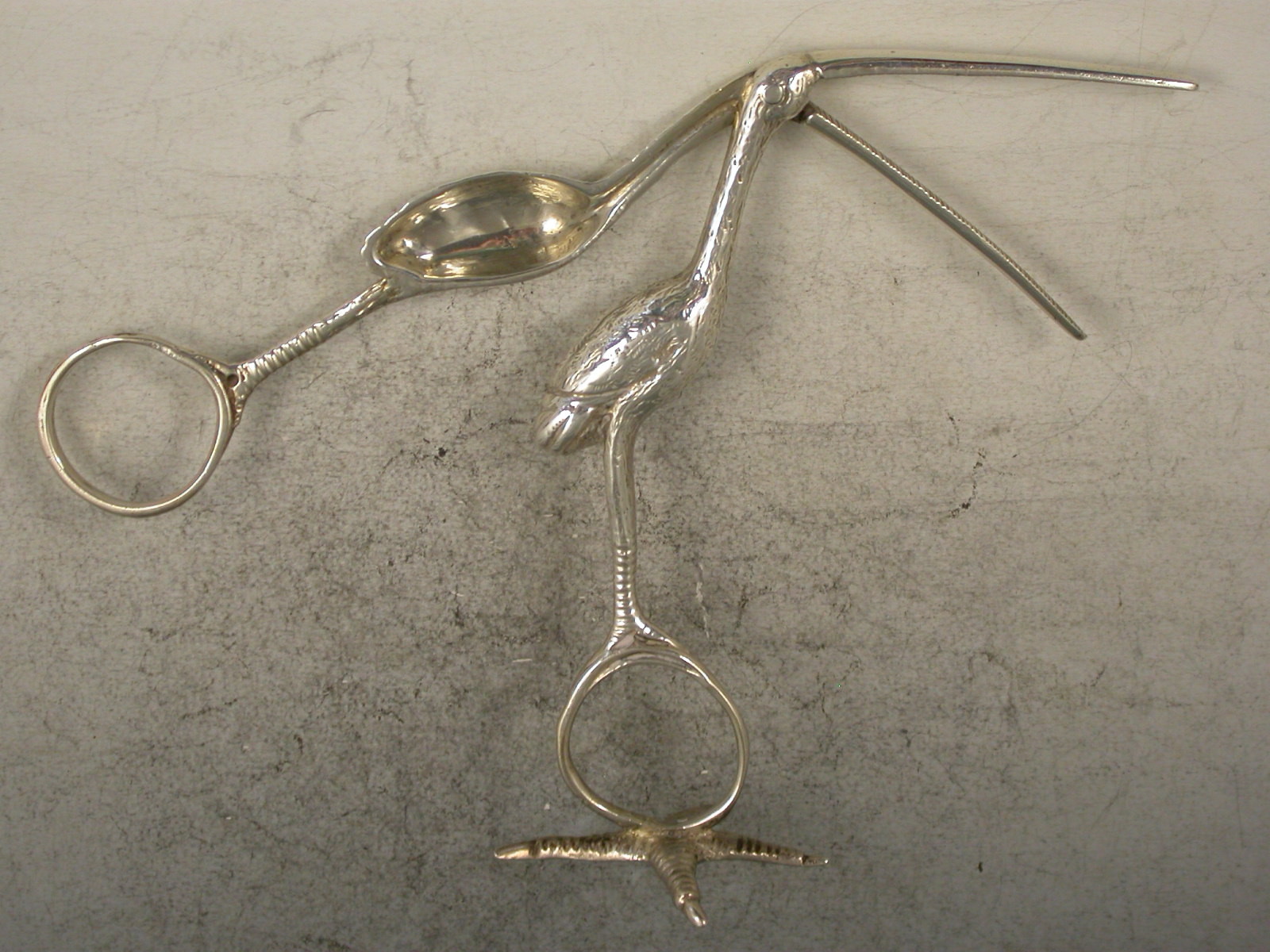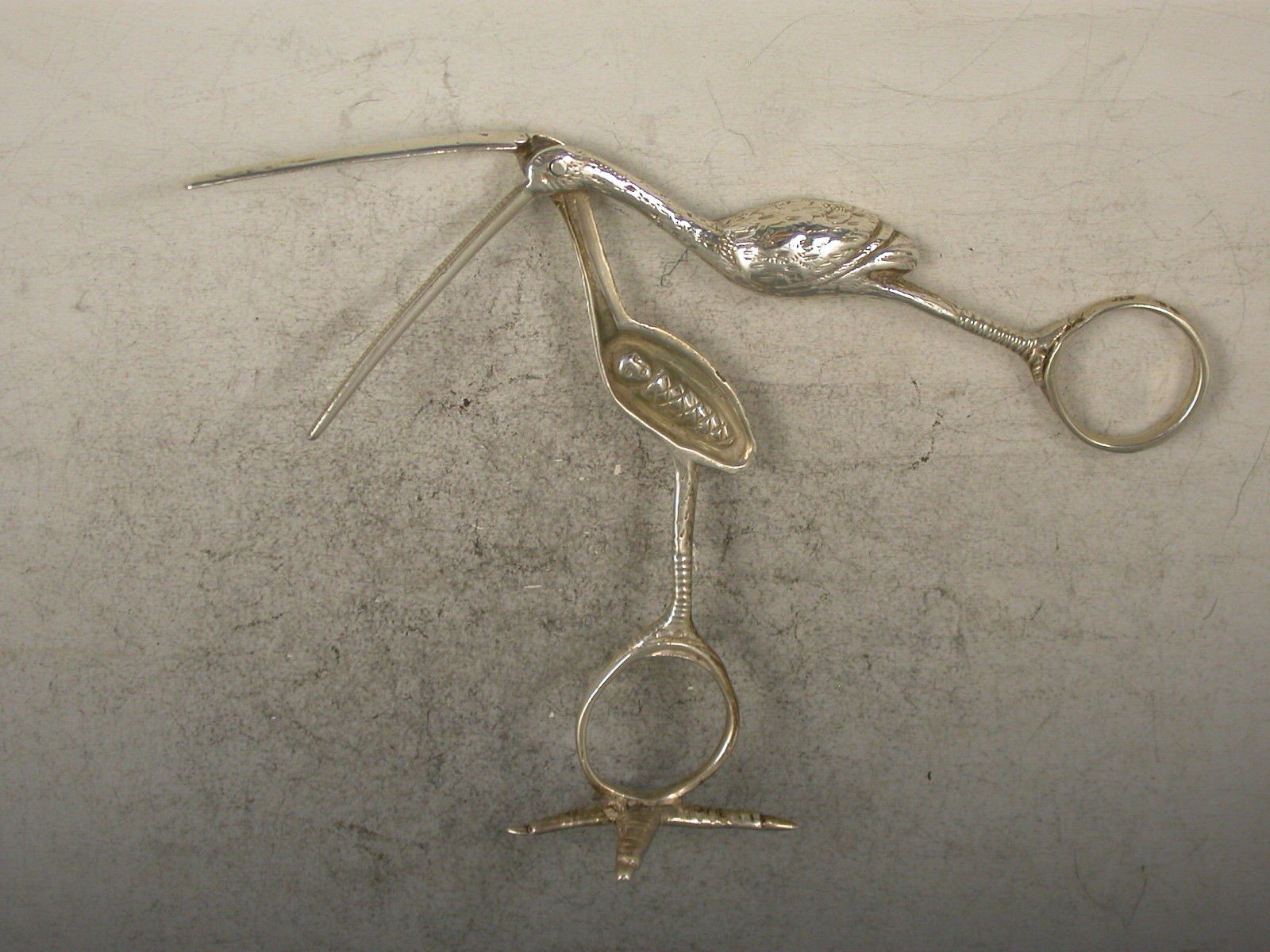 Pair Victorian Cast Antique Silver Stork Ribbon Threaders