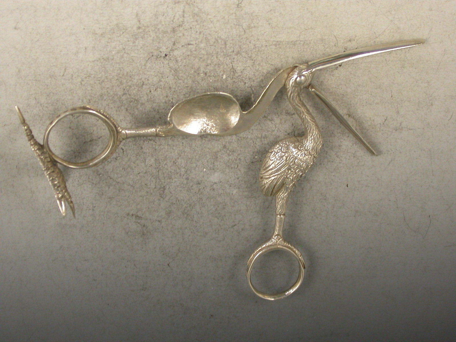 Pair Victorian Cast Antique Silver Stork Ribbon Threaders