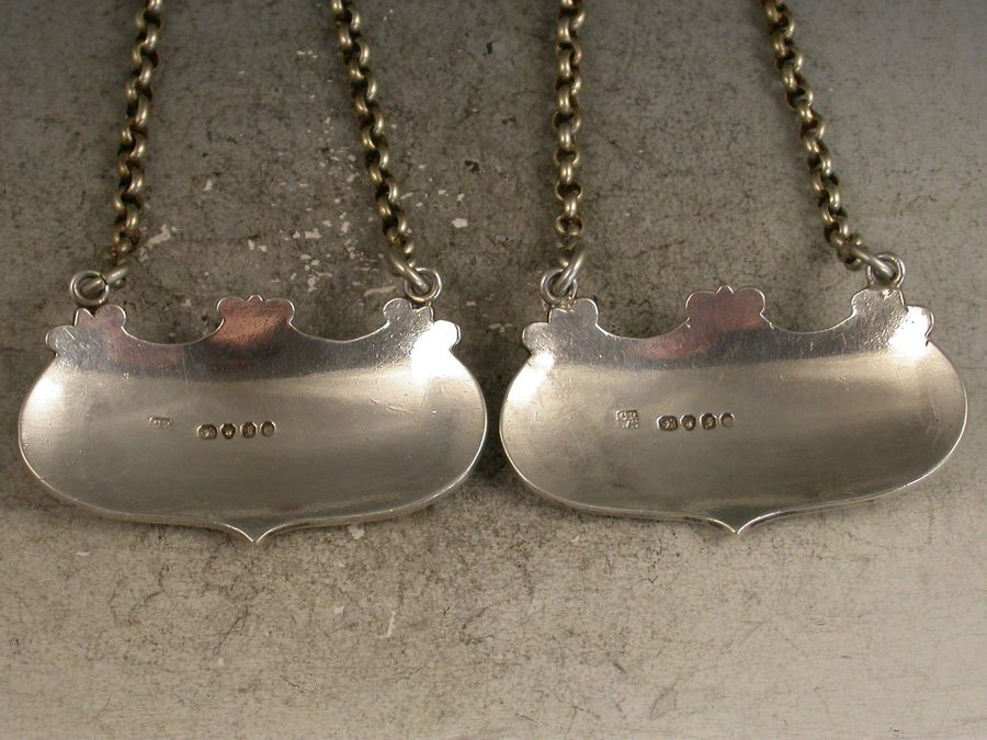 Pair Victorian Elongated Escutcheon Wine Labels 'Claret & Port'