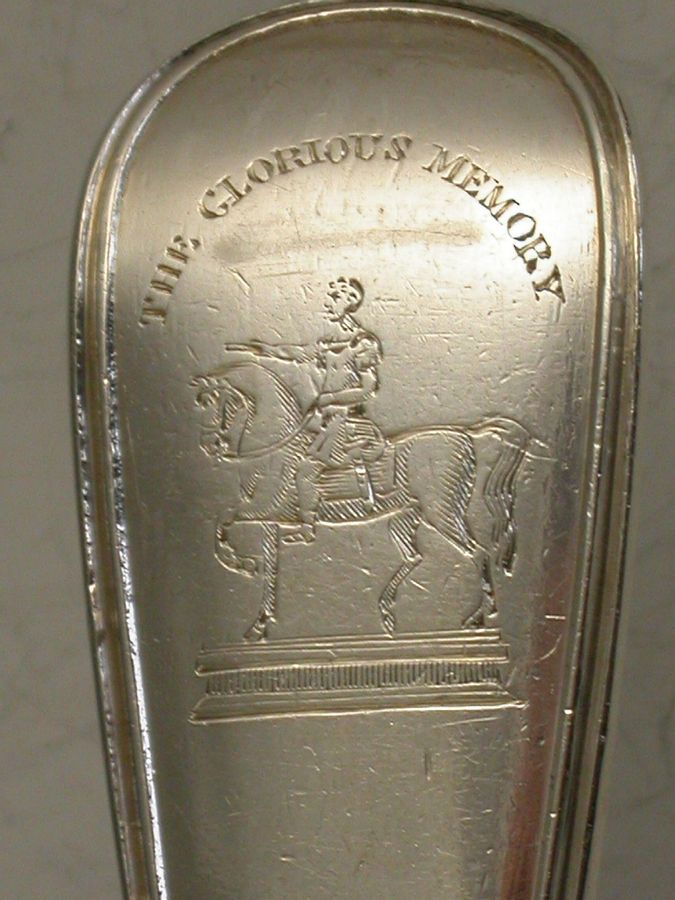 Pair Victorian Irish Silver William III Loyalist Commemorative Table Spoon & Fork William of Orange