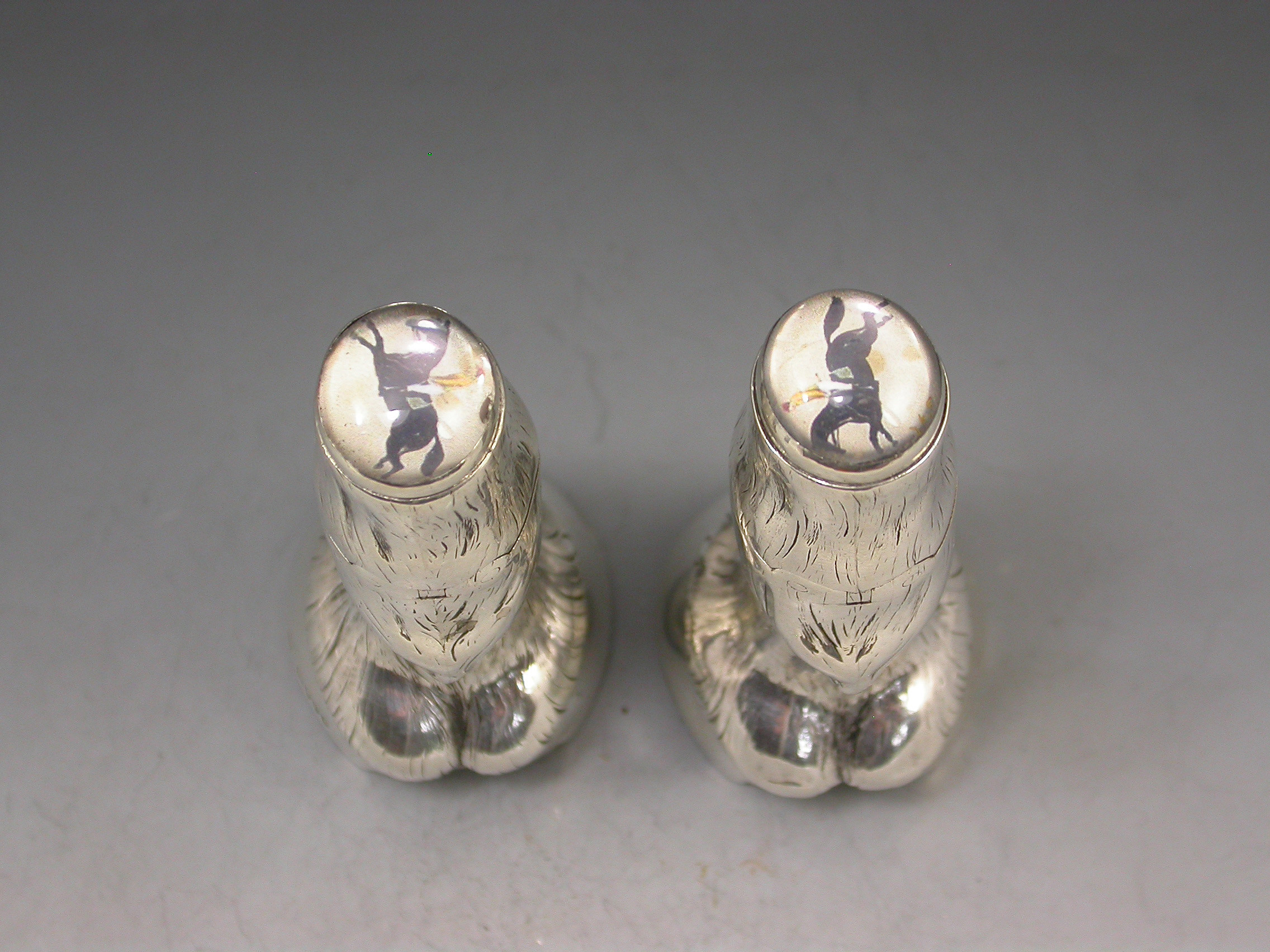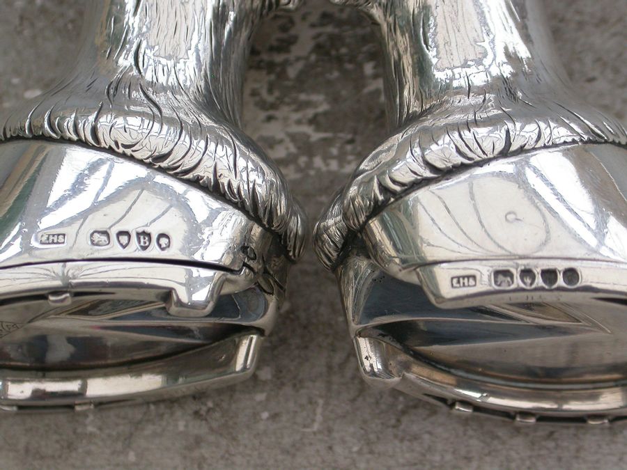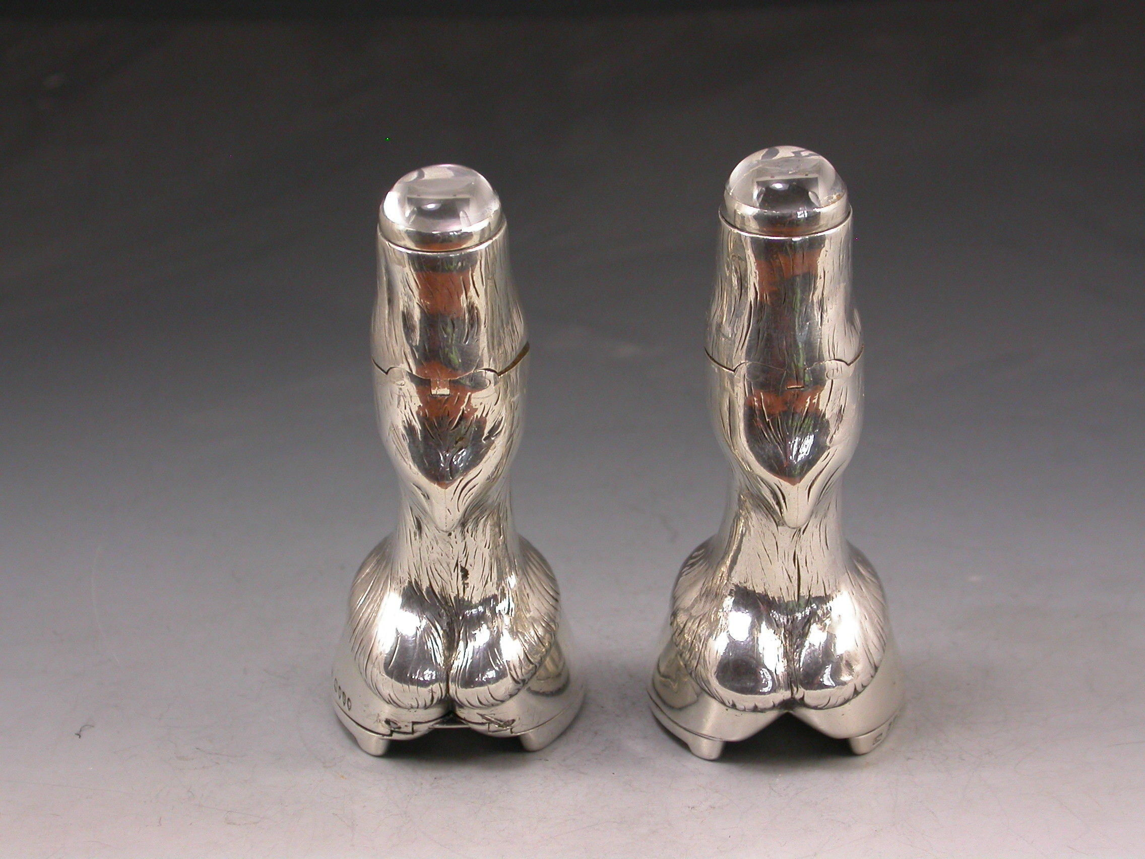 Pair Victorian Novelty Silver Horses Hoof & Fetlock Scent Bottles
