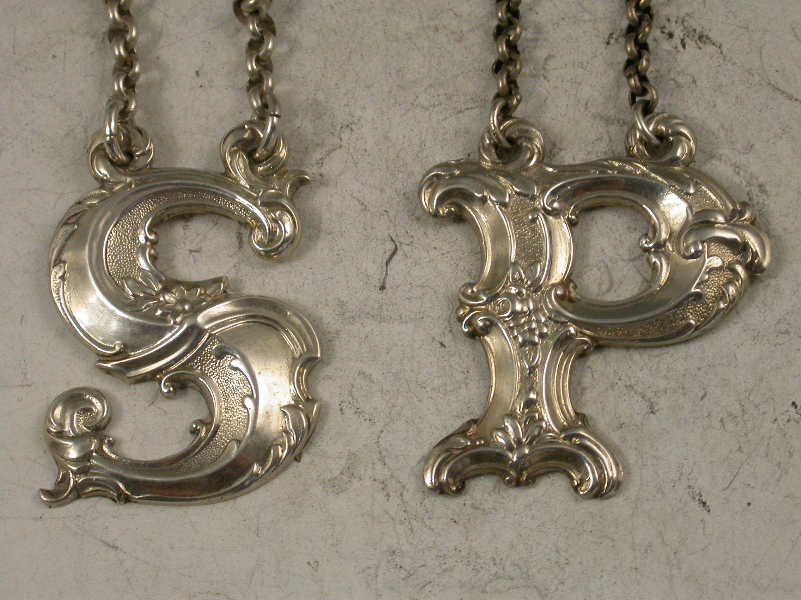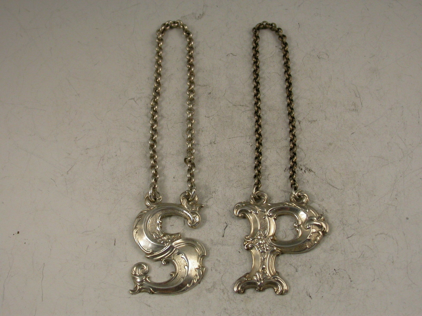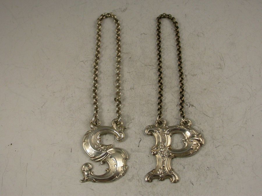 Pair Victorian Scottish Silver Initial Letter Wine Labels 'S & P'