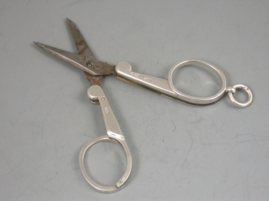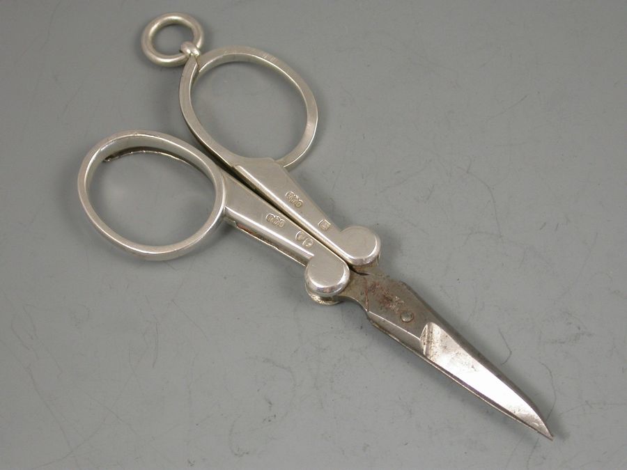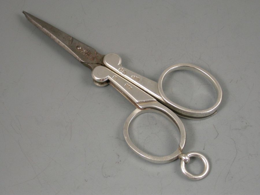 Pair Victorian Silver Mounted Steel Folding Scissors