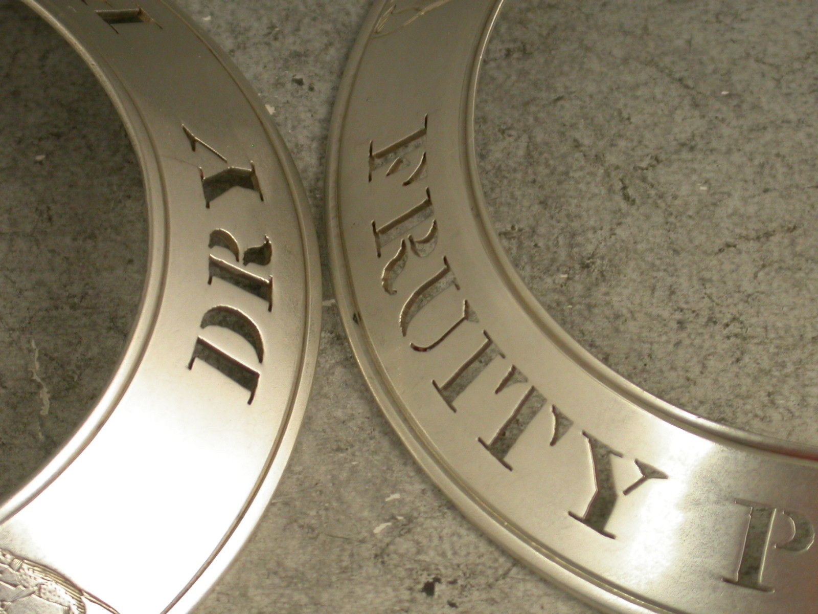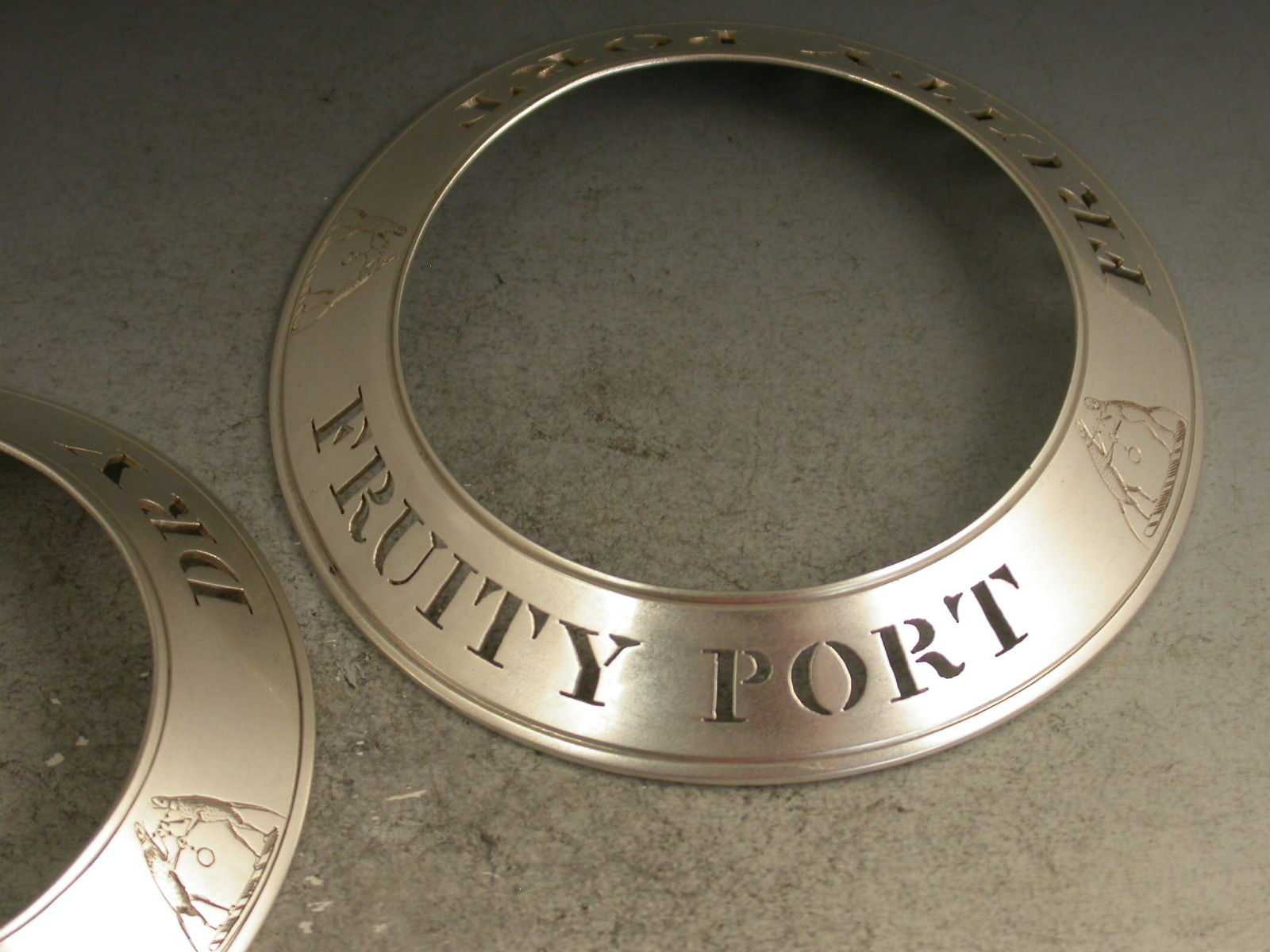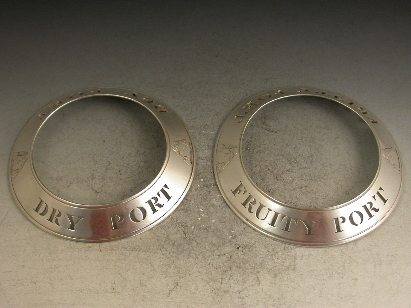 Pair Victorian Silver Plate Bottle Collars Dry Port & Fruity Port - The Ironmongers Co