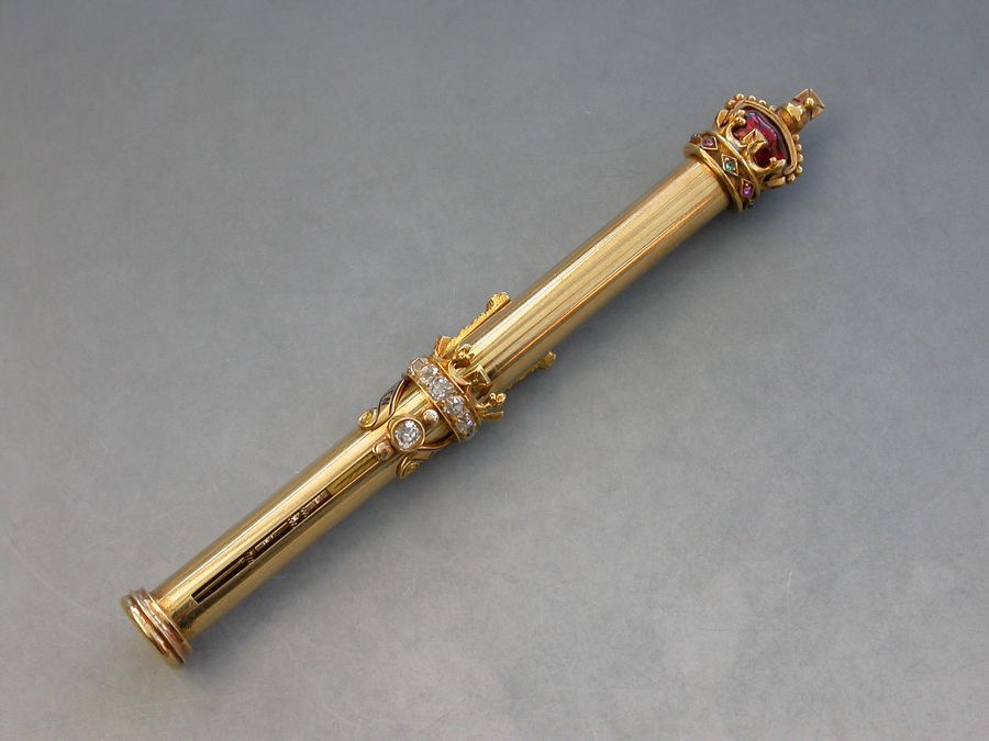 Prince of Wales Royal Presentation Gold Diamond Ruby Emerald & Enamel Sliding Propelling Pencil