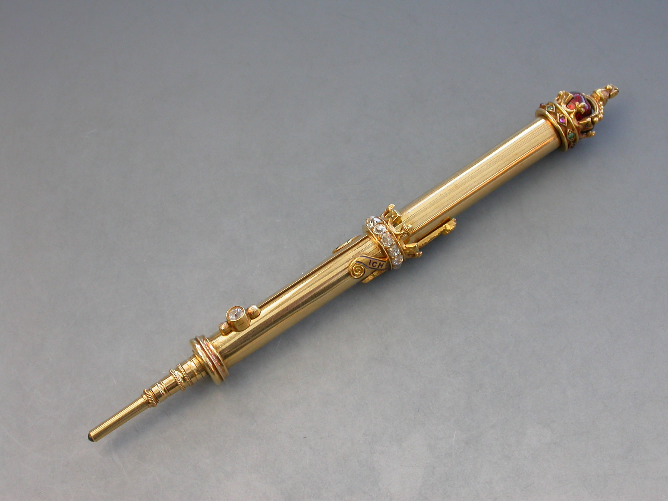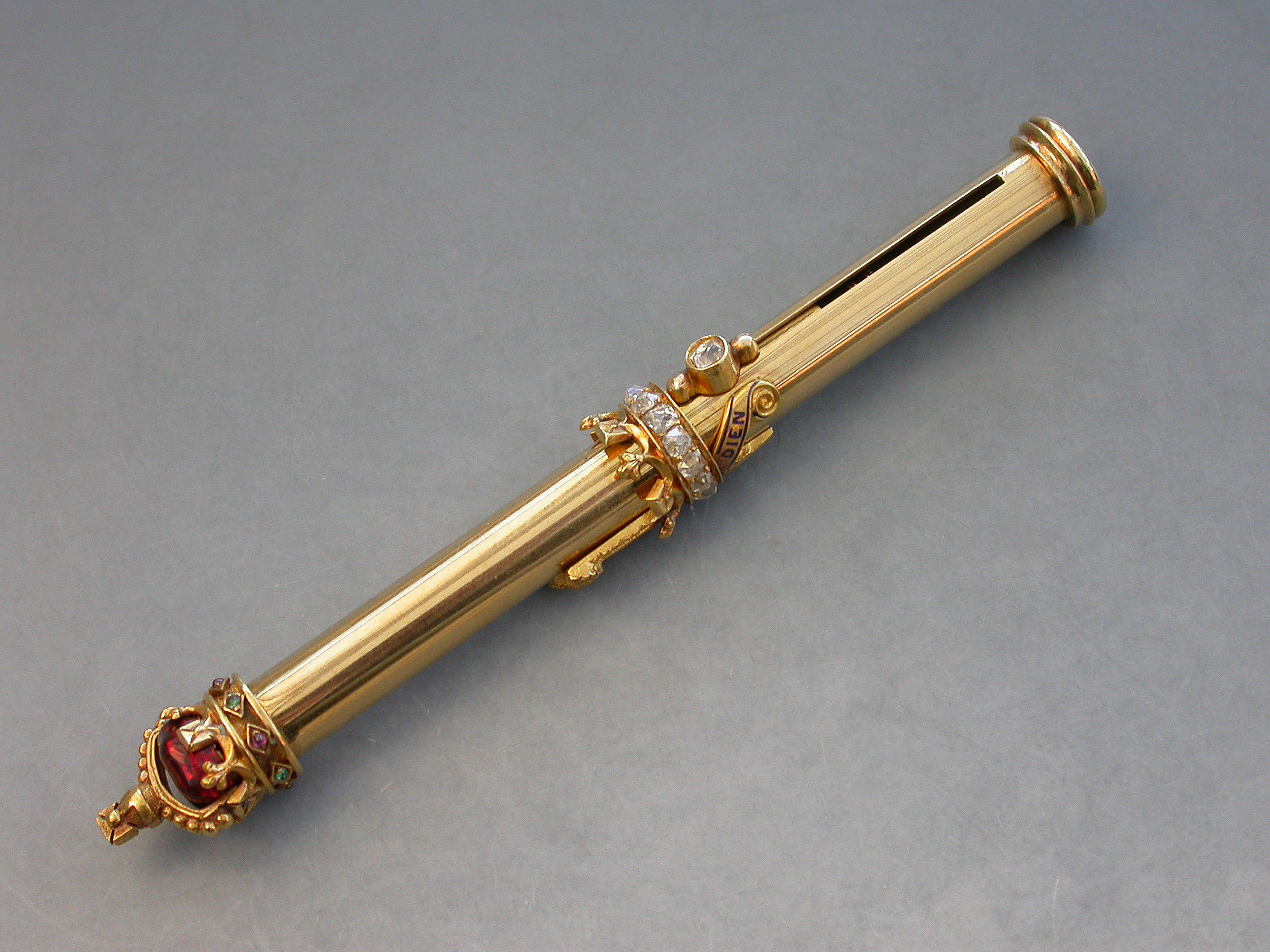 Prince of Wales Royal Presentation Gold Diamond Ruby Emerald & Enamel Sliding Propelling Pencil
