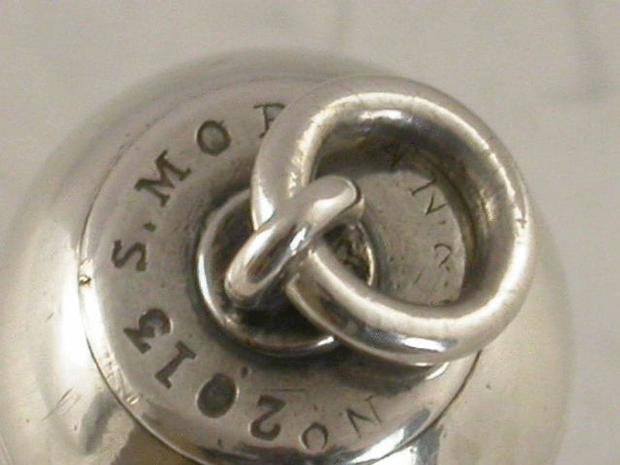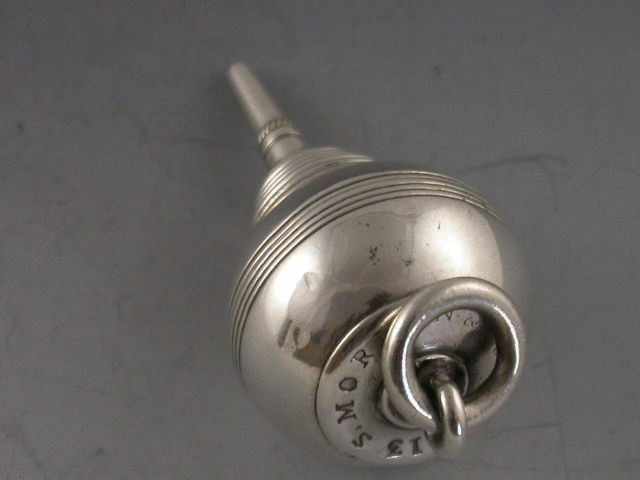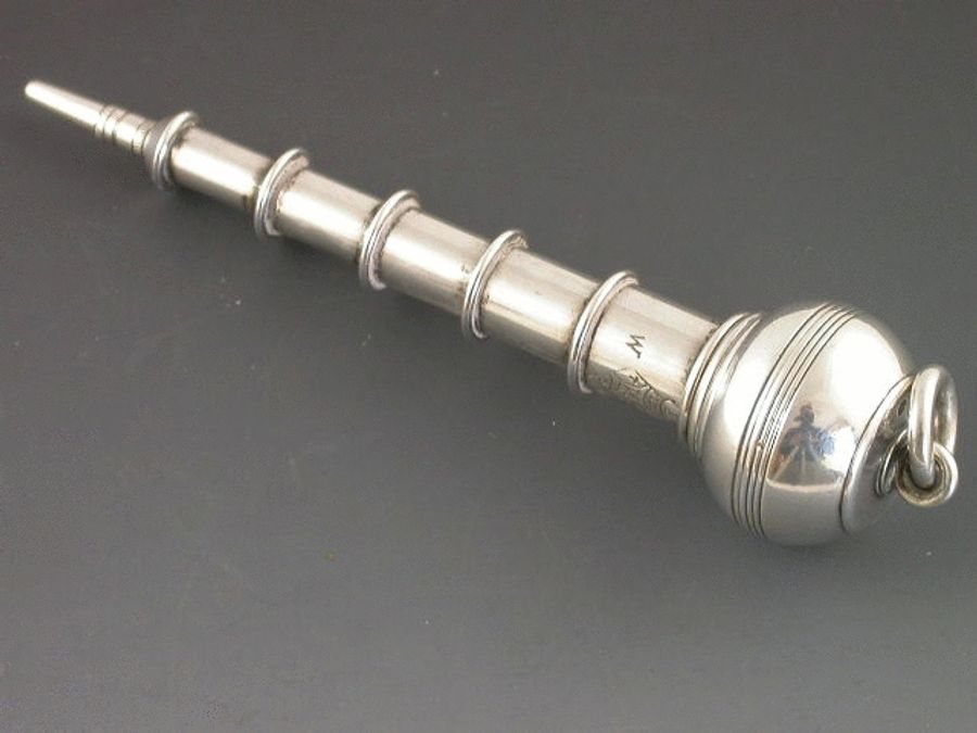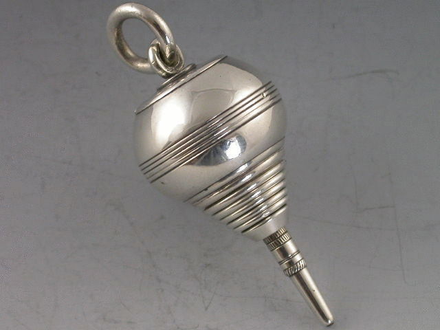 A rare Victorian silver telescopic Propelling Pencil modelled in the form of a Plumb Bob or Spinning Top, with five extending sections.
