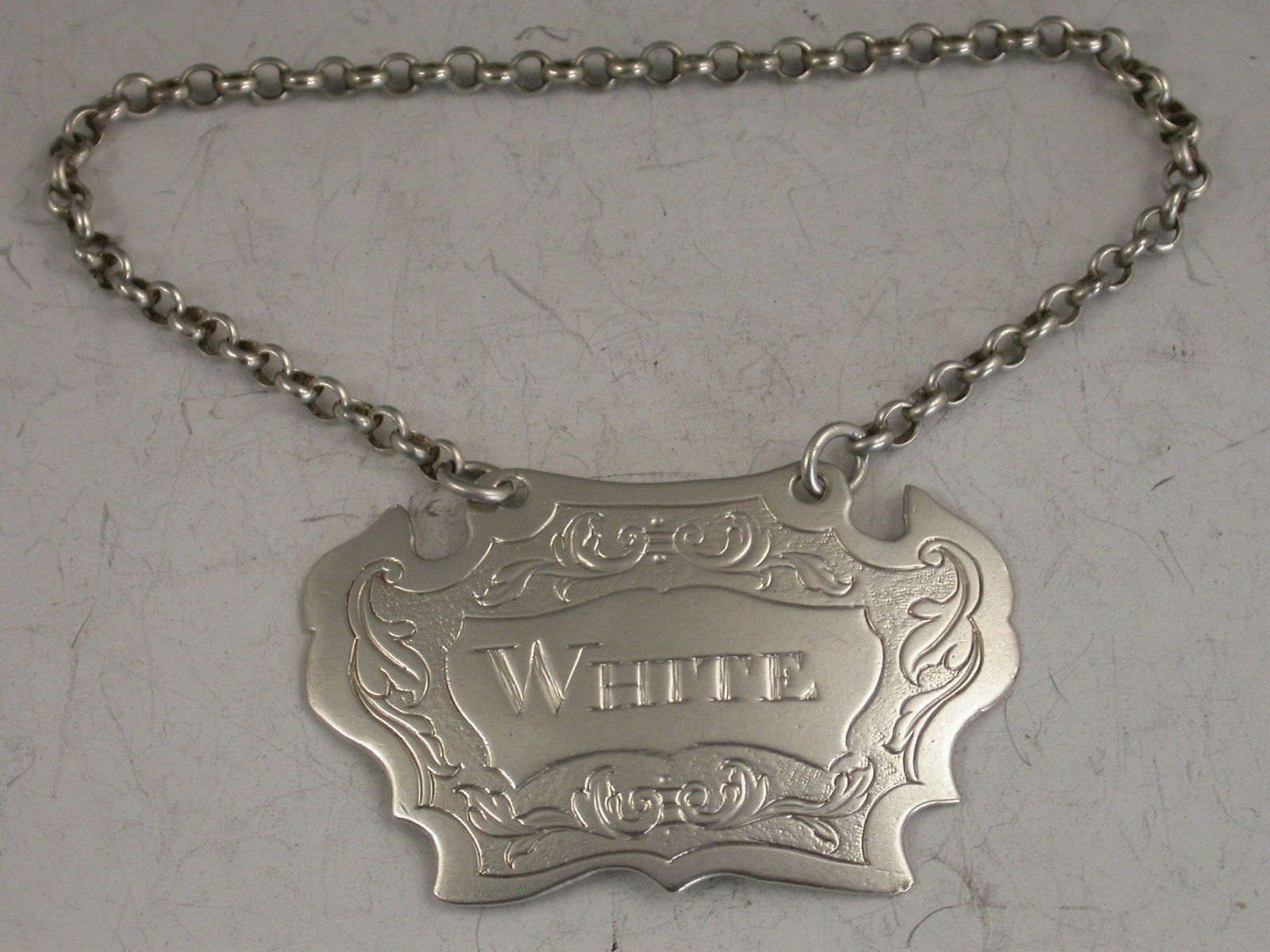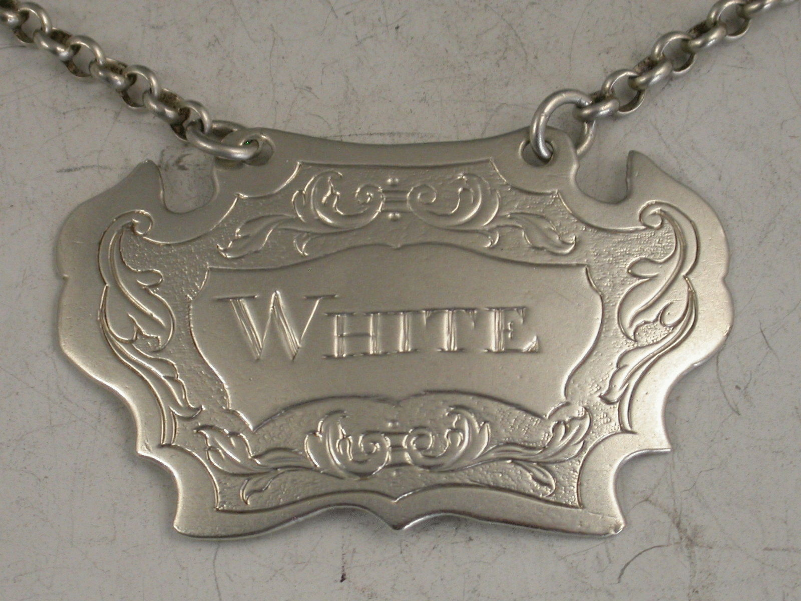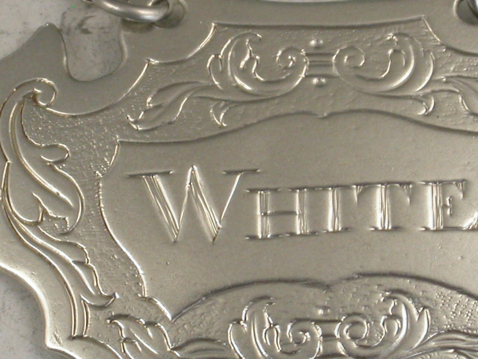Provincial Antique Silver Escutcheon Wine Label 'White'