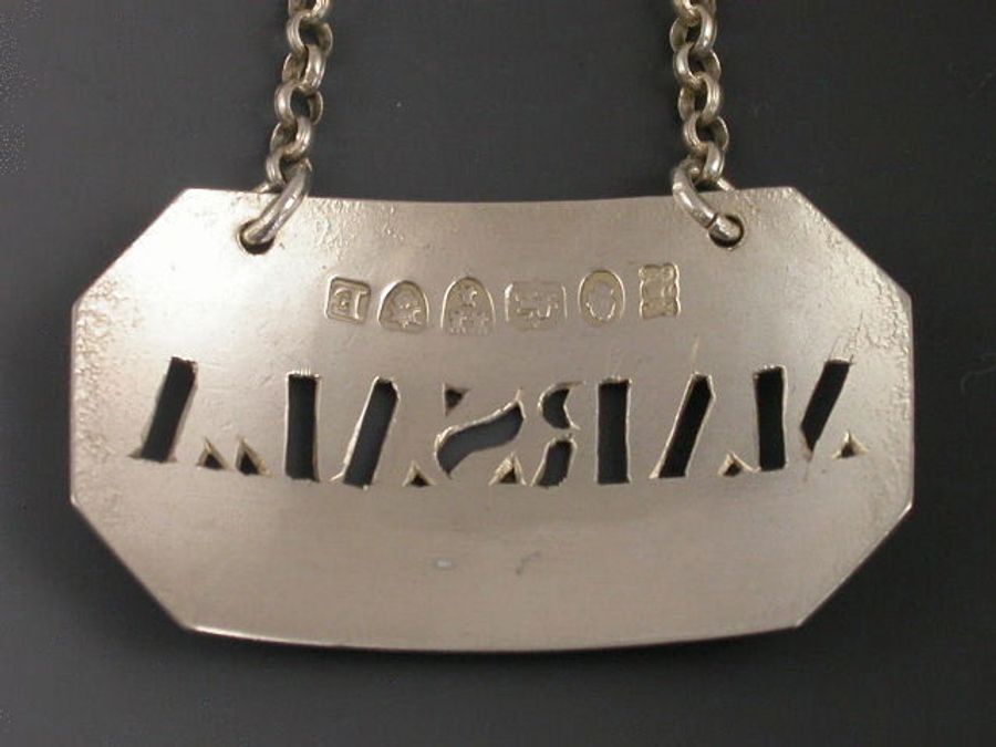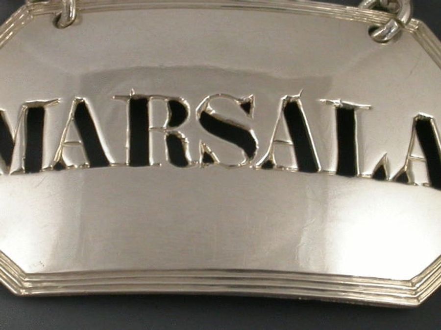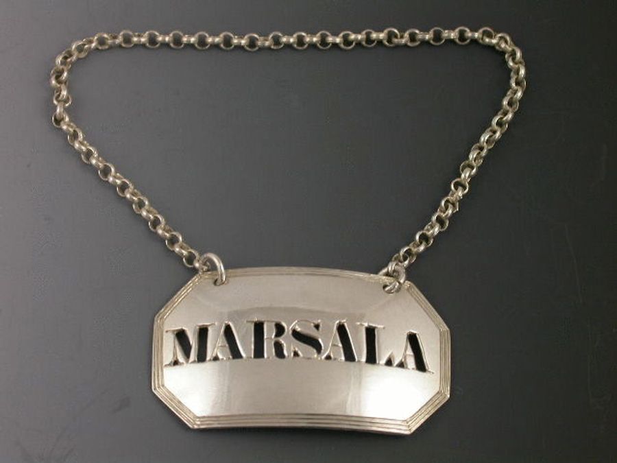 A rare early Victorian Provincial silver Wine Label of cut-cornered rectangular form with triple reeded border, pierced for MARSALA.