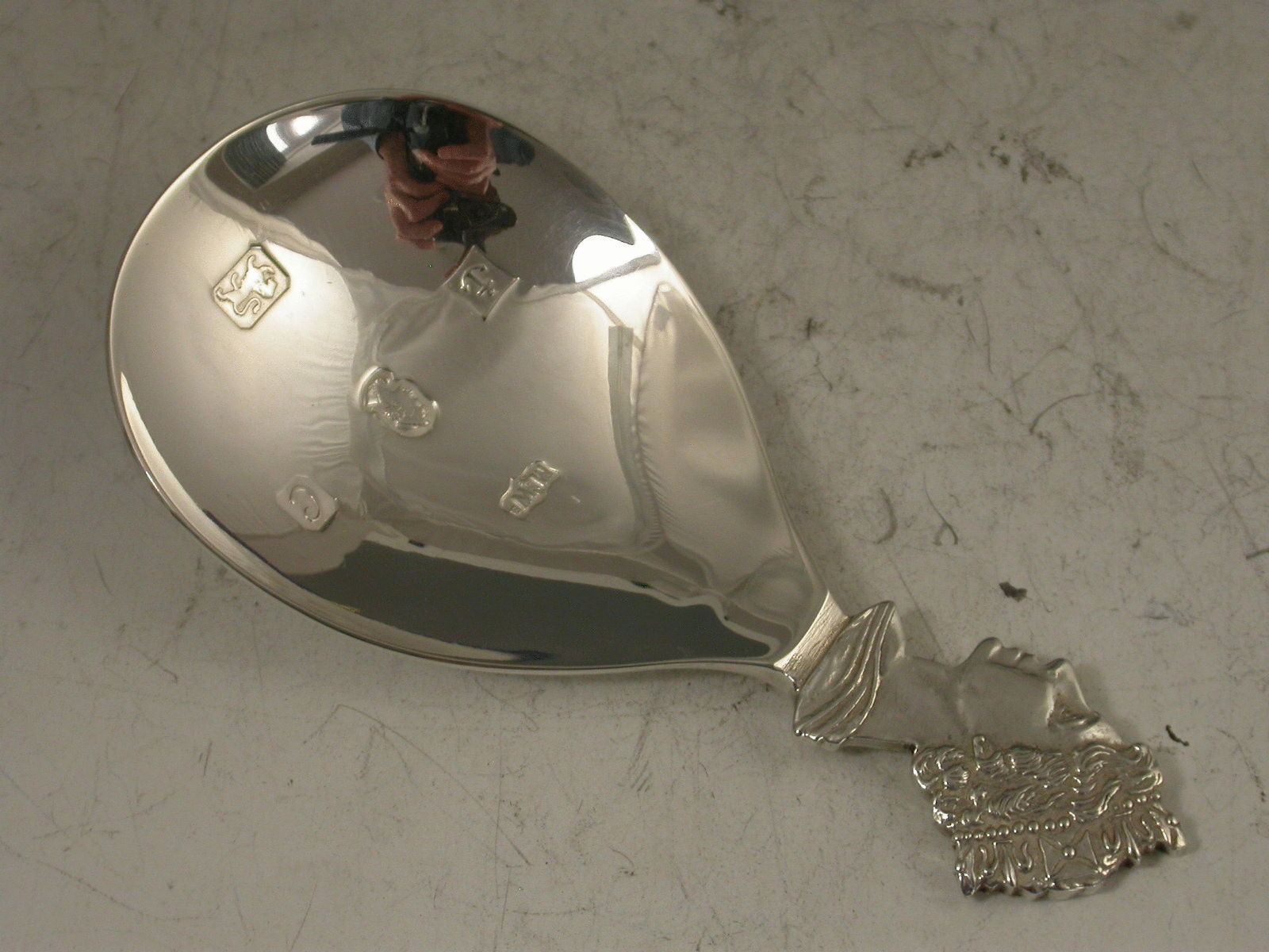 A modern commemorative silver Caddy Spoon, made to commemorate the Silver Jubilee of Queen Elizabeth II in 1977. Complete with original case.