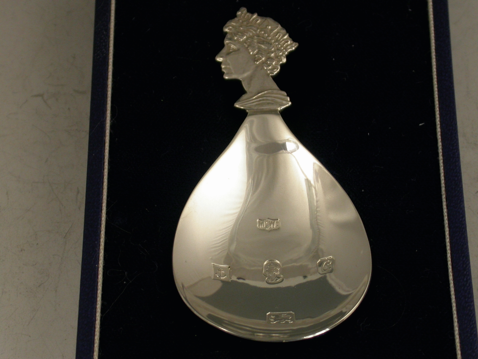 Queen Elizabeth II Silver Jubilee Cased Caddy Spoon