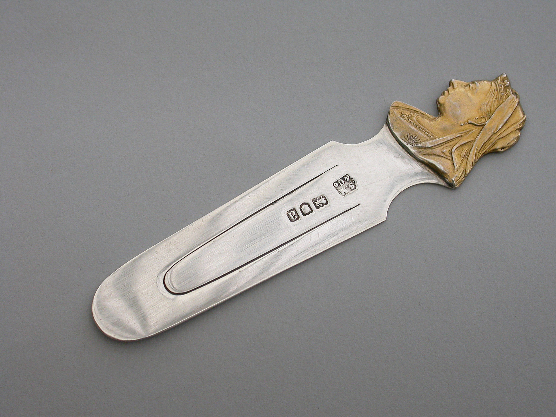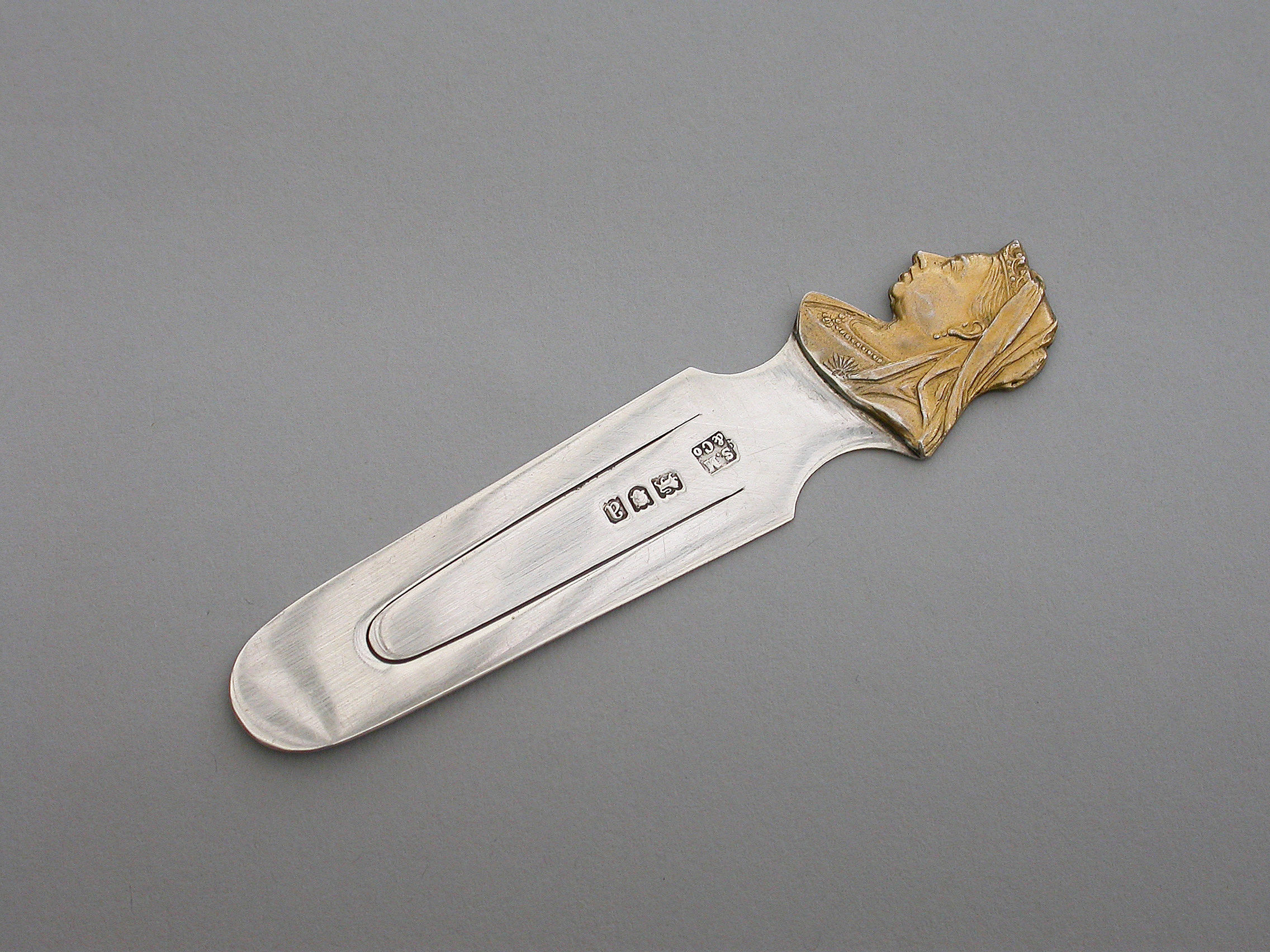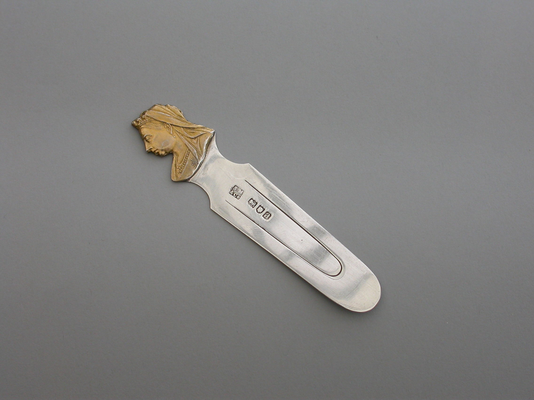 A good Victorian parcel gilt silver Bookmark, the terminal formed as a bust of Queen Victoria in silver gilt. Made to commemorate the Diamond Jubilee of Victoria 1n 1897.