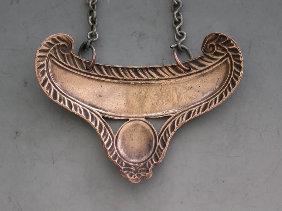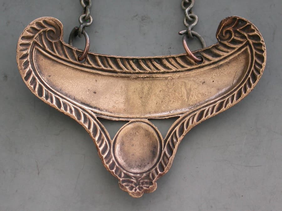 A rare and unusual 18th century Old Sheffield Plate ""copper-back"" Wine Label, of upside down double scroll form with vacant oval cartouche and feather edge border, incised and niello filled for Old Hock.