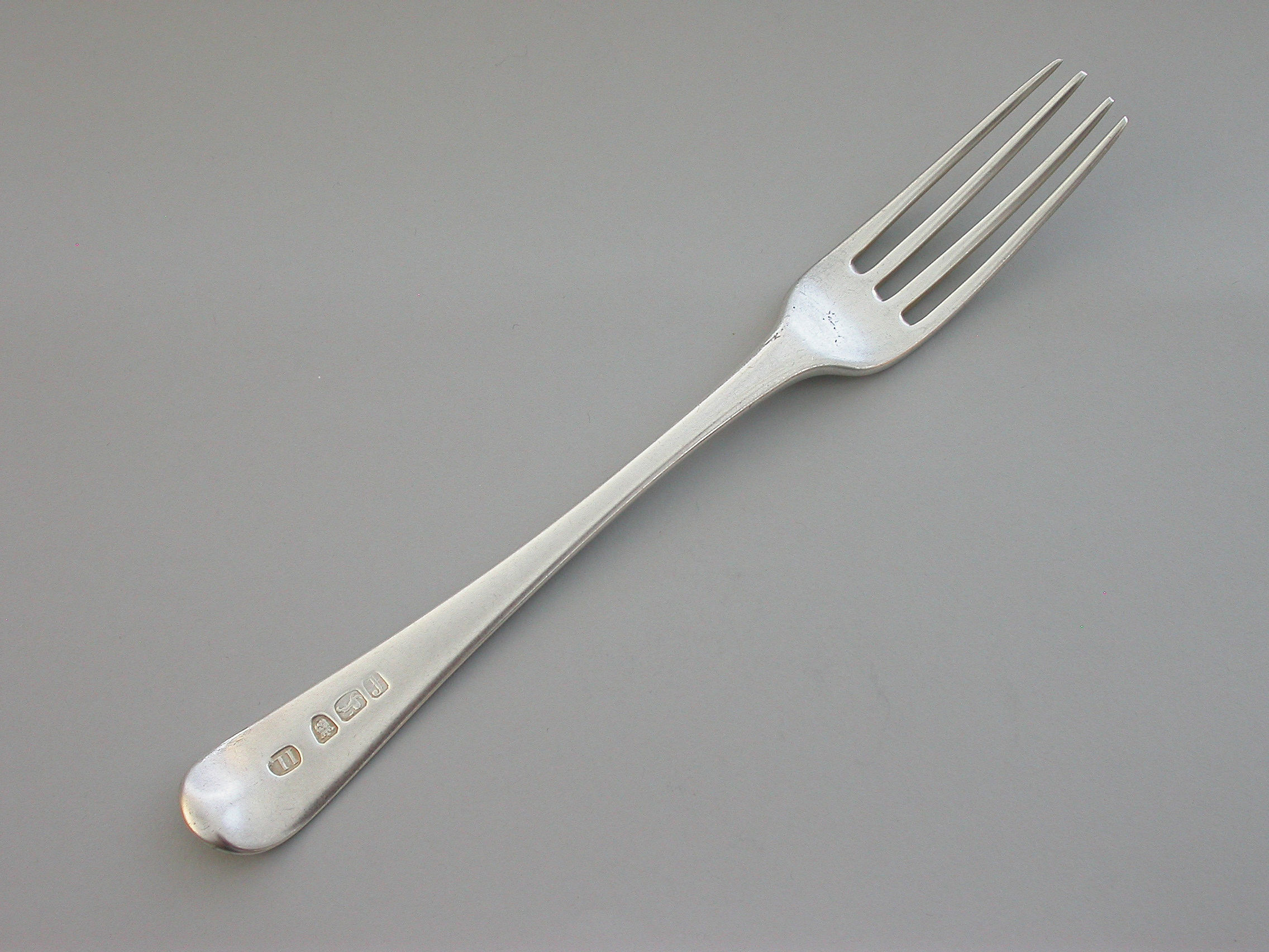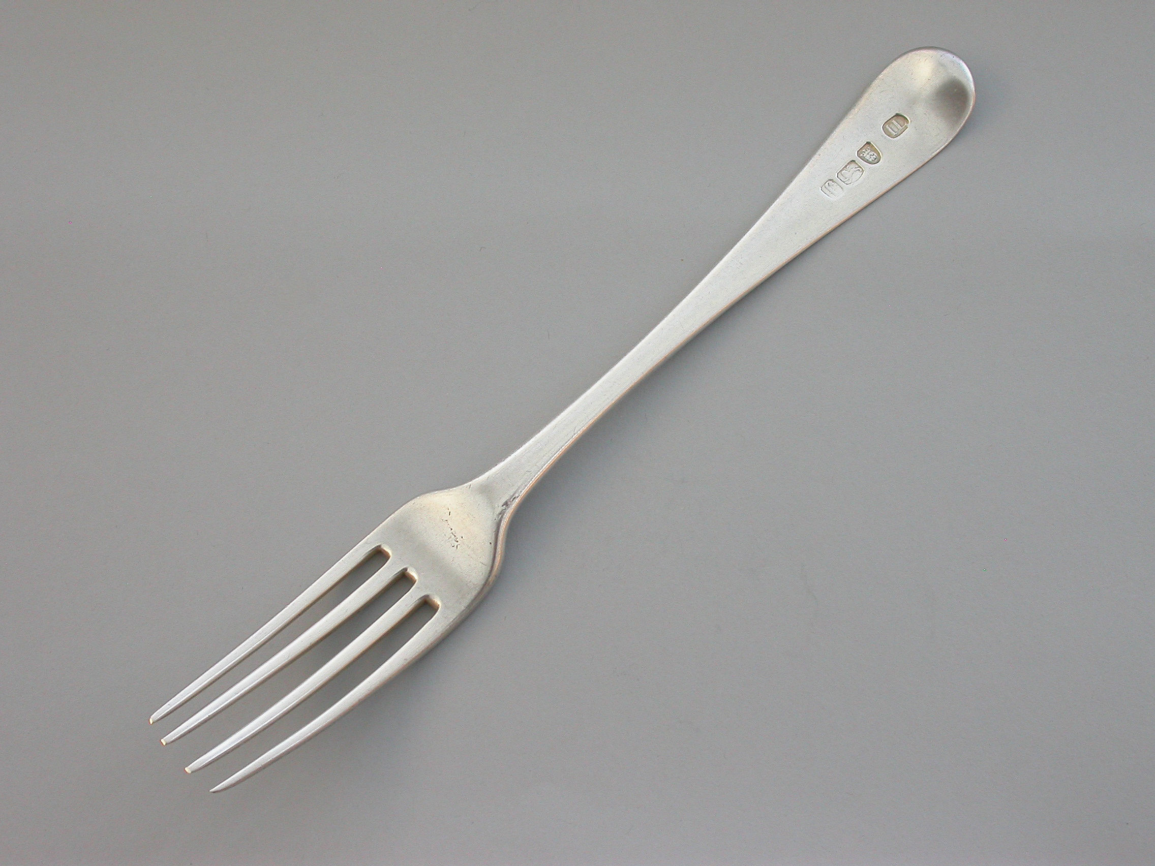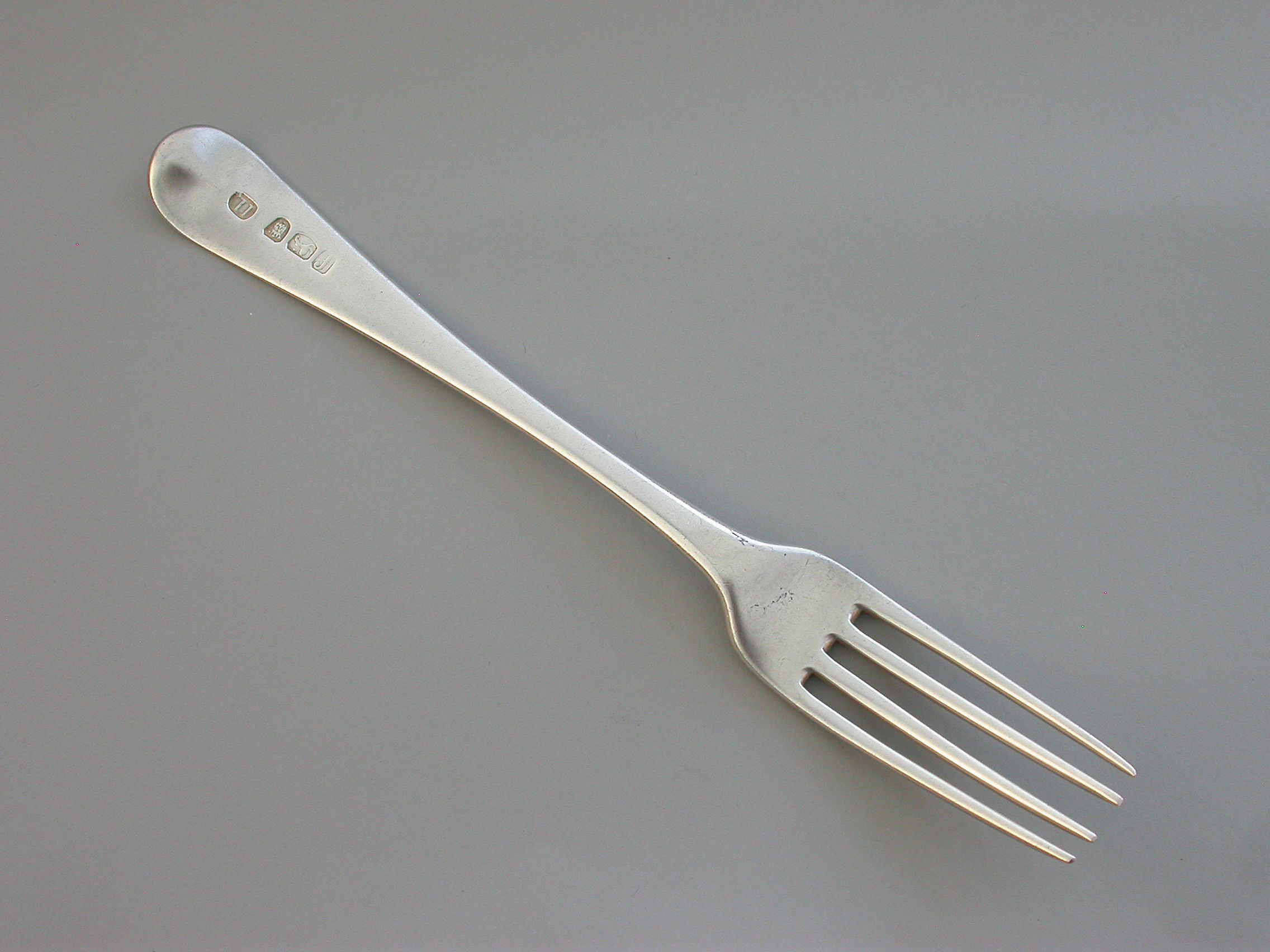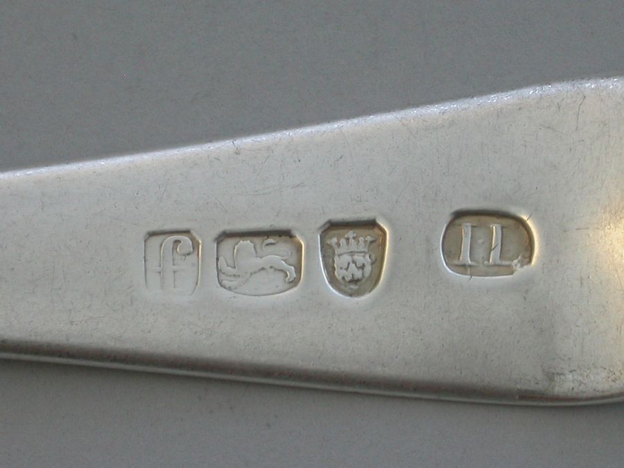 The marks very unusually struck to the front of the fork rather than the back - probably at a clients special request.
