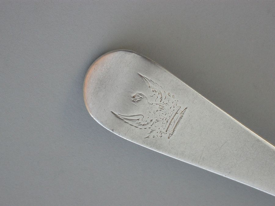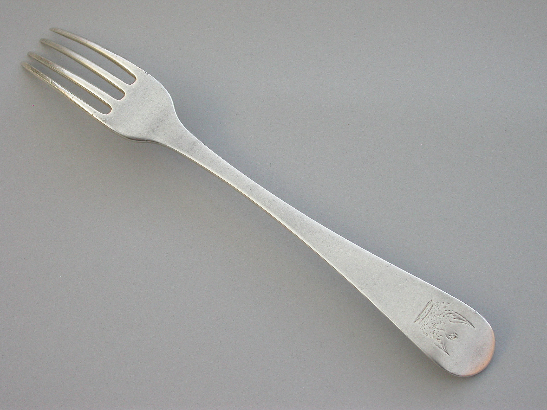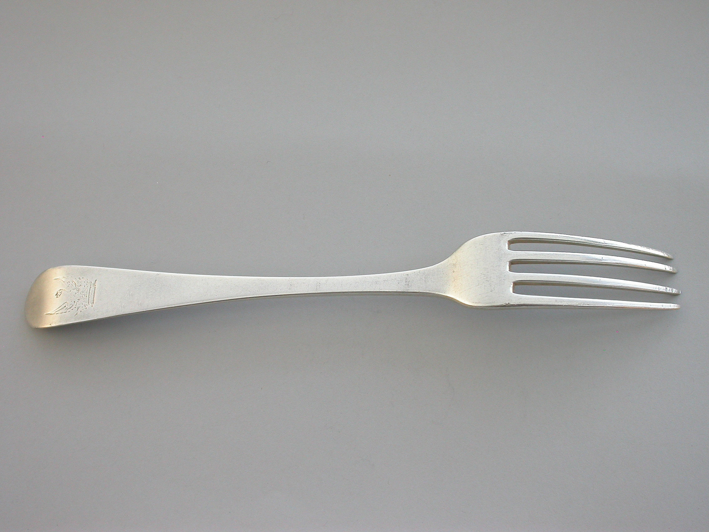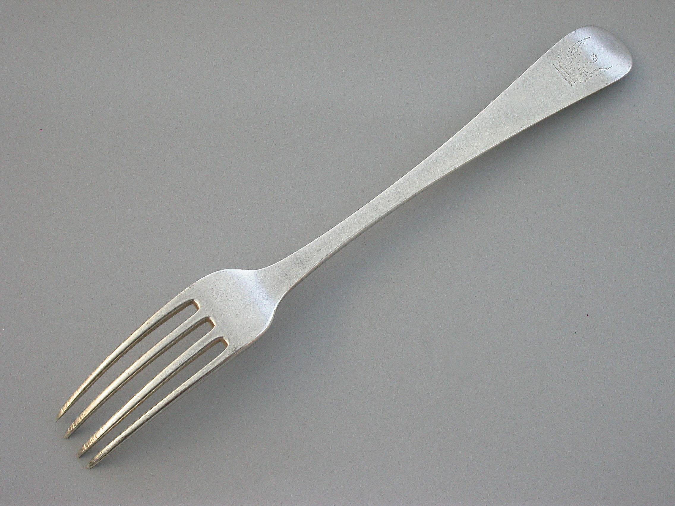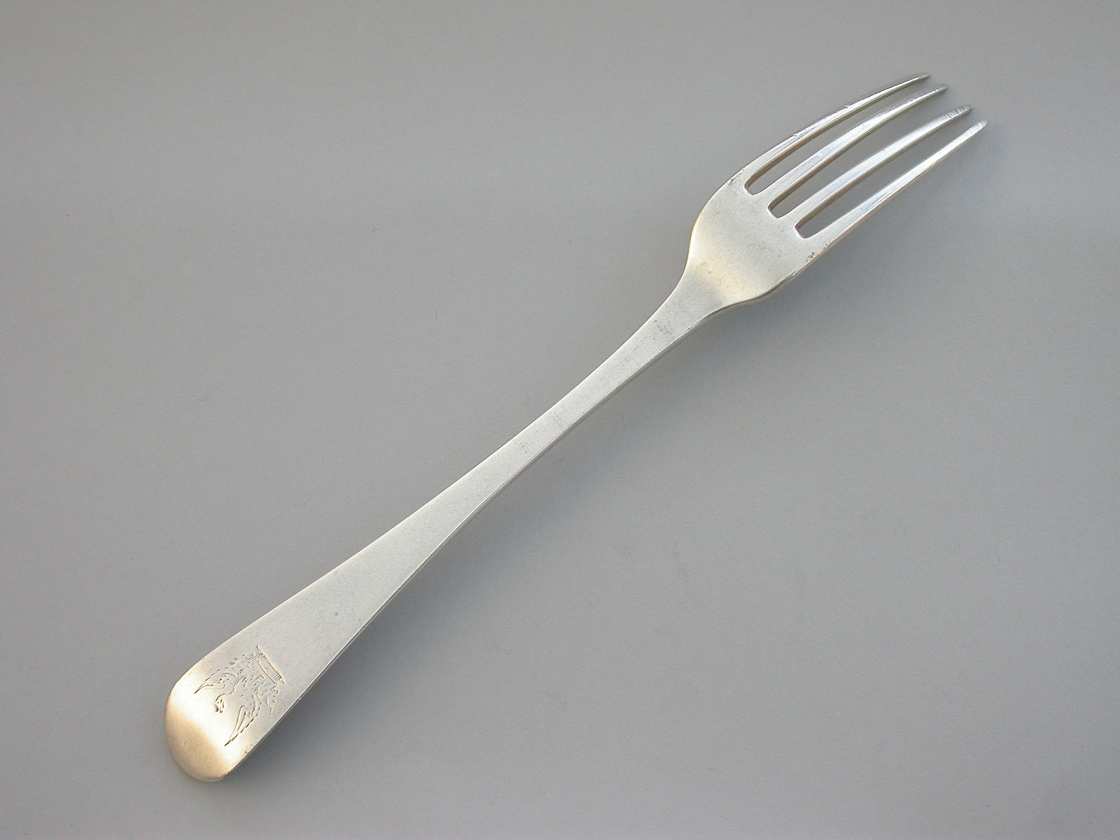 A very rare 18th century plain Old English pattern silver Table Fork engraved with a contemporary crest.