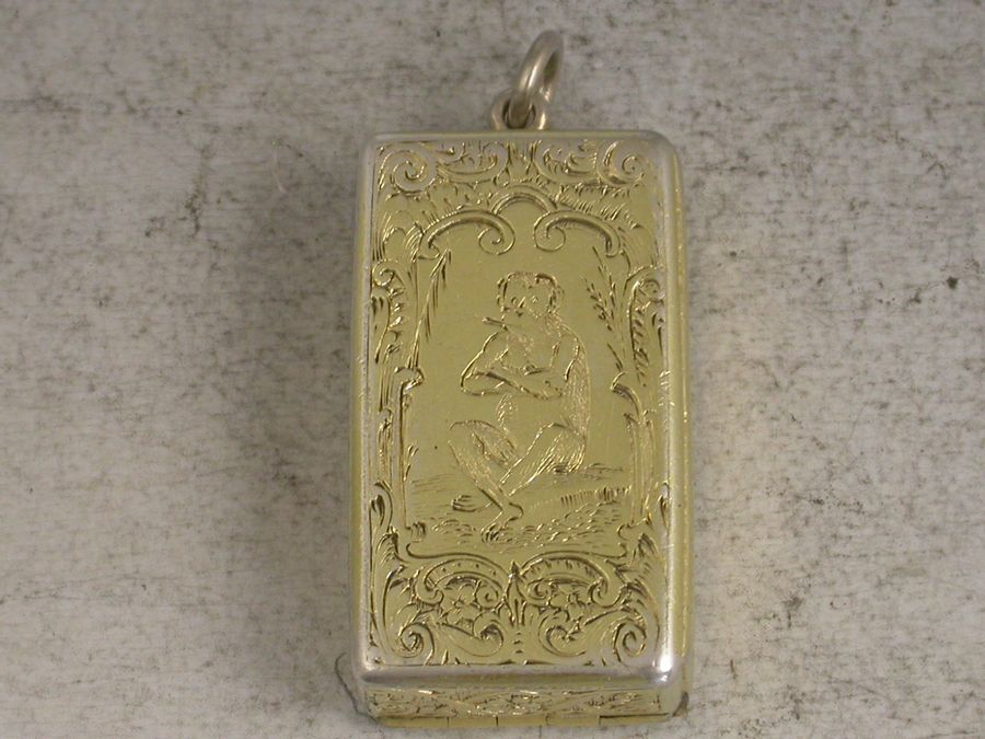 Rare & Early Victorian Silver Gilt Smoking Monkey Vesta Case