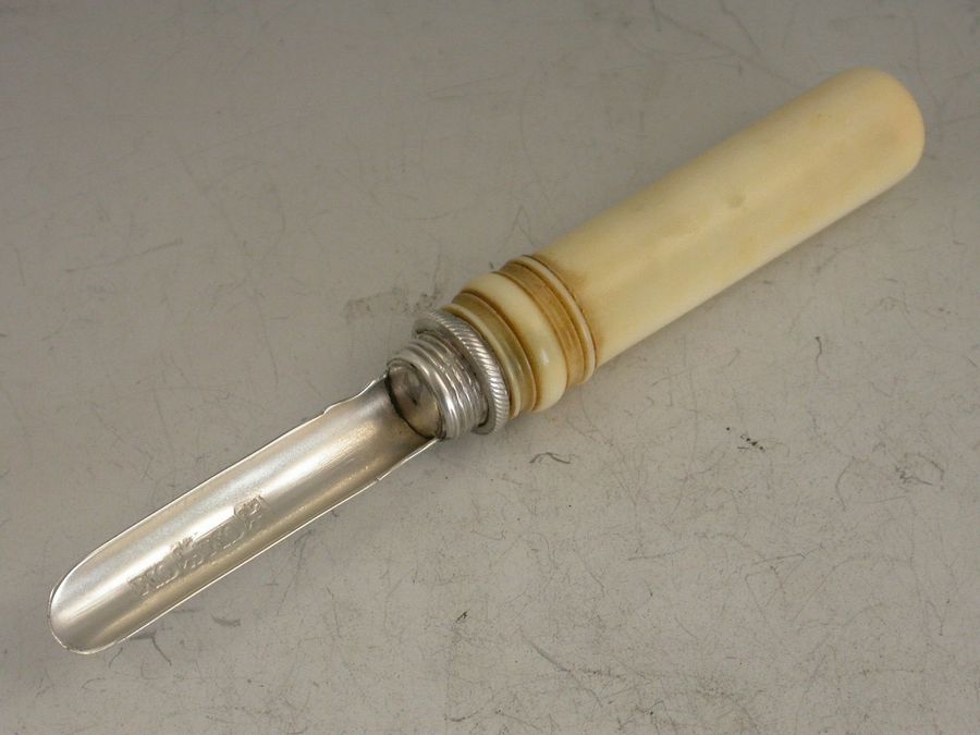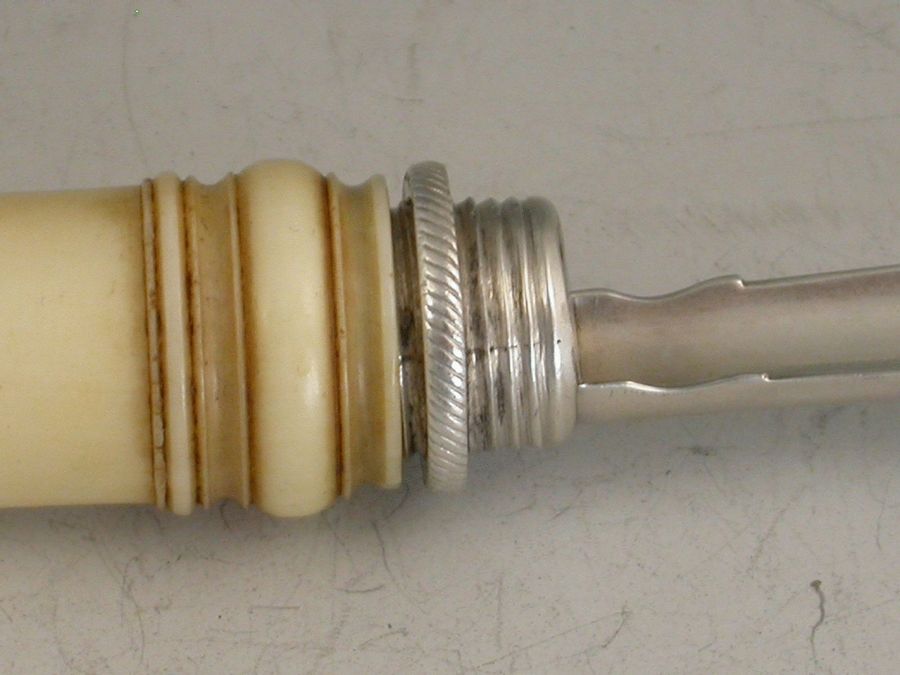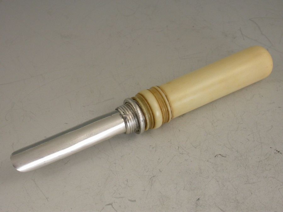 An extremely rare early 19th century Scottish Provincial silver Apple corer with turned ivory handle which houses the blade when not in use.