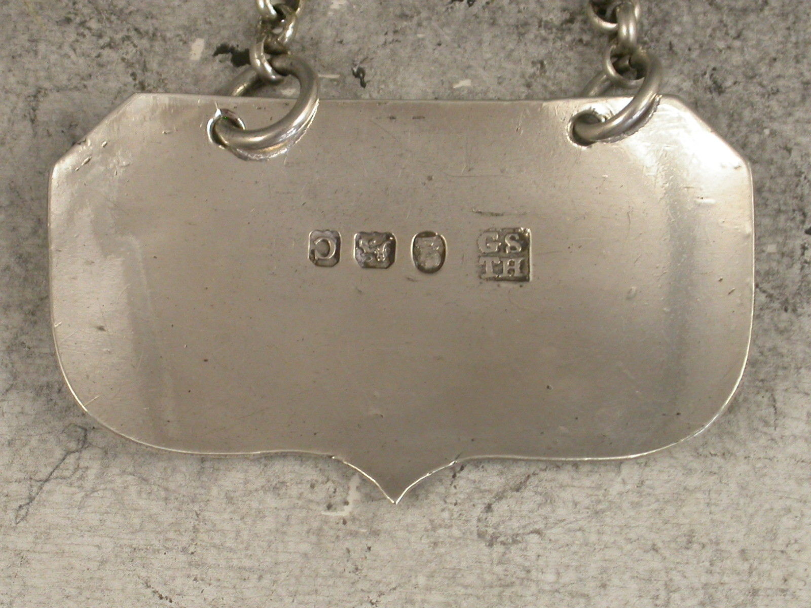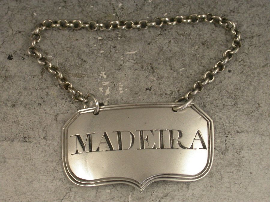 A rare George III silver Wine Label of a previously unrecorded shape, rectangular with cut-corners at the top and with rounded serpentine shaped base with a point at the centre, double reeded border.