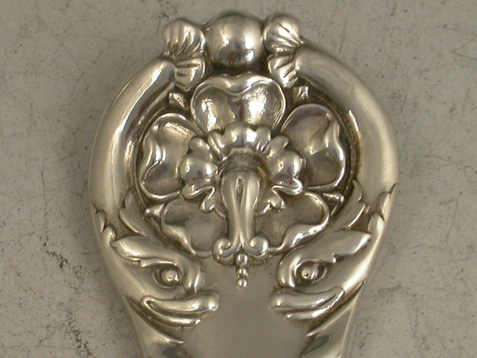 Rare Dolphin Pattern Cased Silver Christening Spoon & Fork