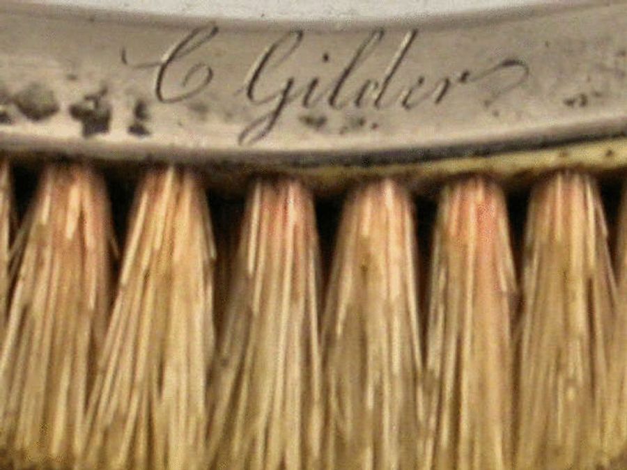 An extremely rare and unusual Georgian silver double headed Tooth Brush with green stained ivory handle, one head of curved concave form the other of curved convex form to facilitate reaching every crevice! Engraved with contemporary name C.Gilder.