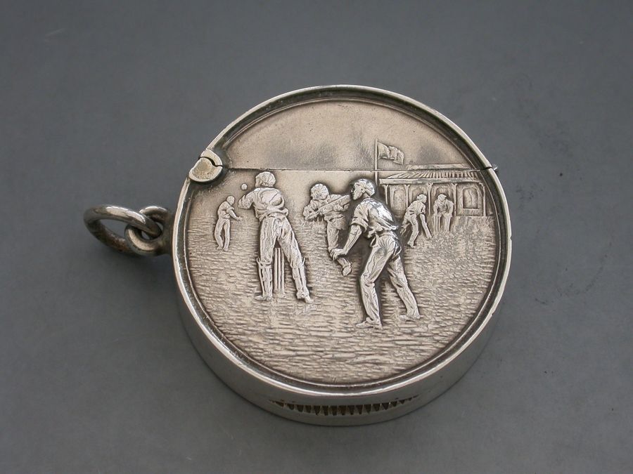 Rare Edwardian Antique Silver Cricket Match Vesta Case