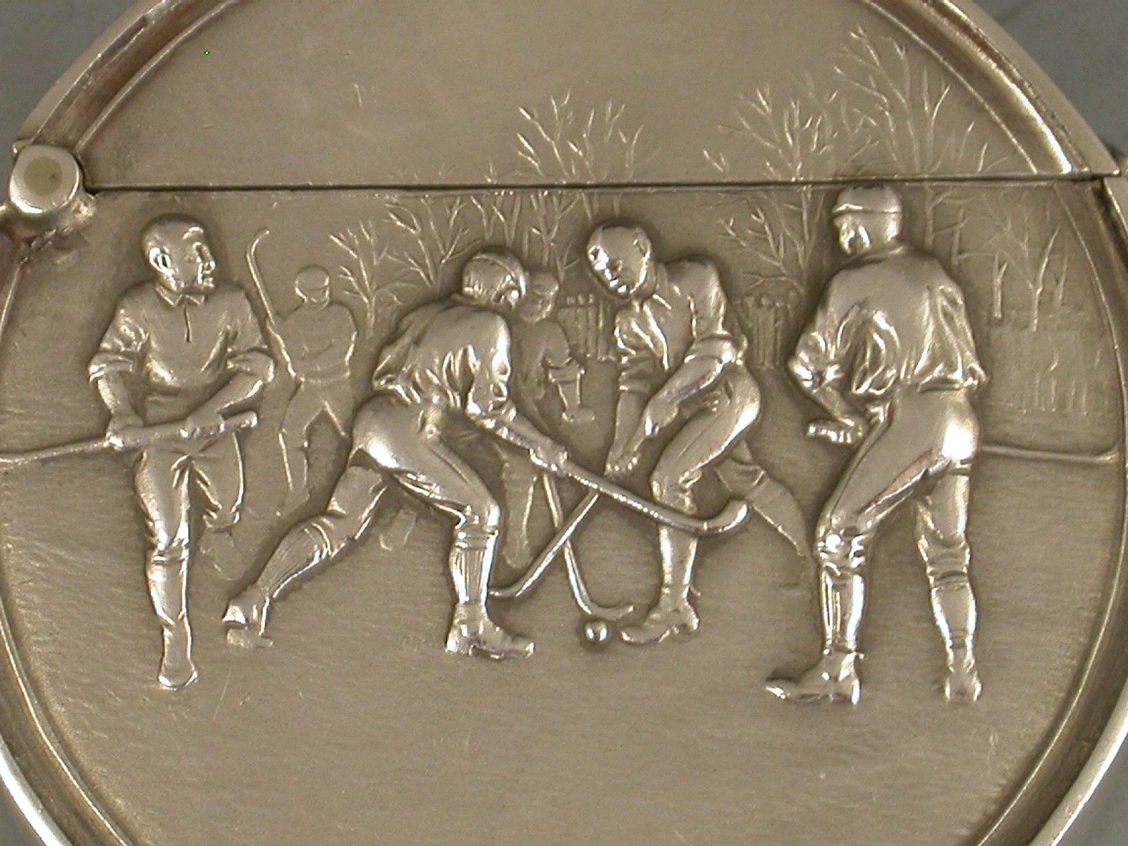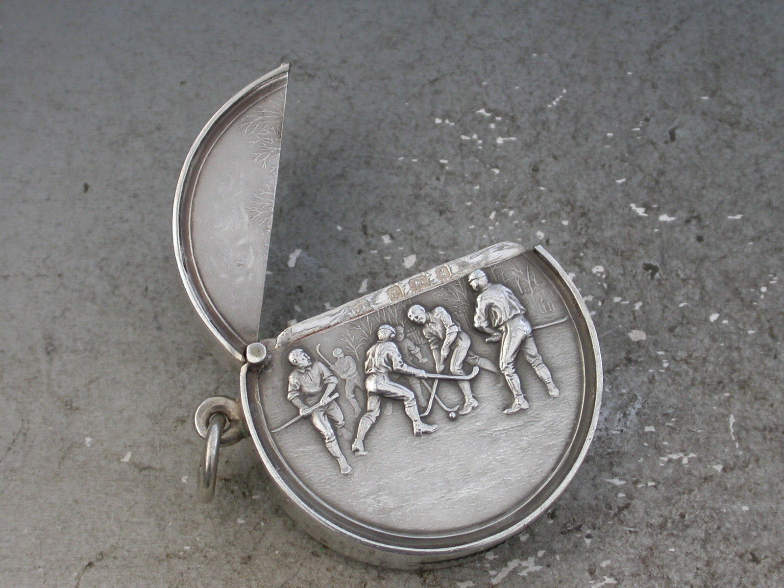 Rare Edwardian Antique Silver Hockey Players Vesta Case