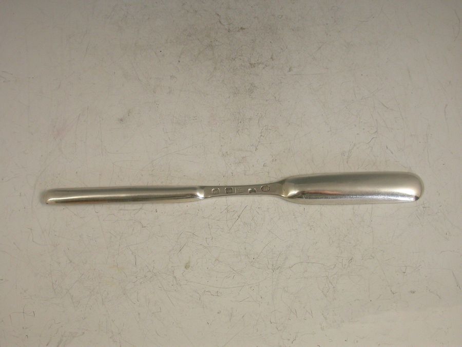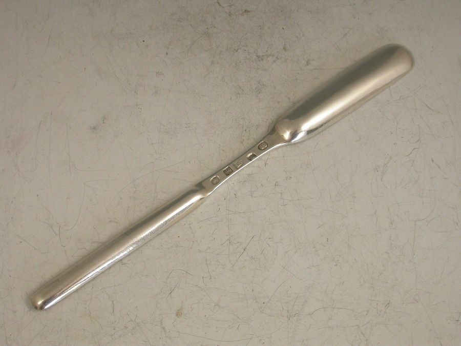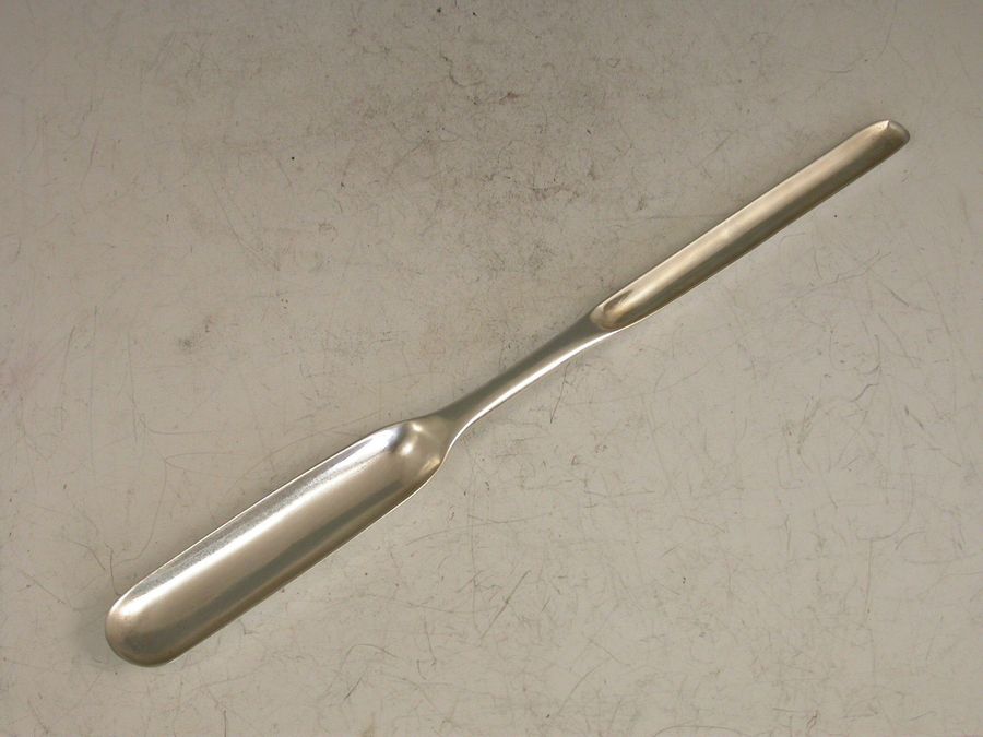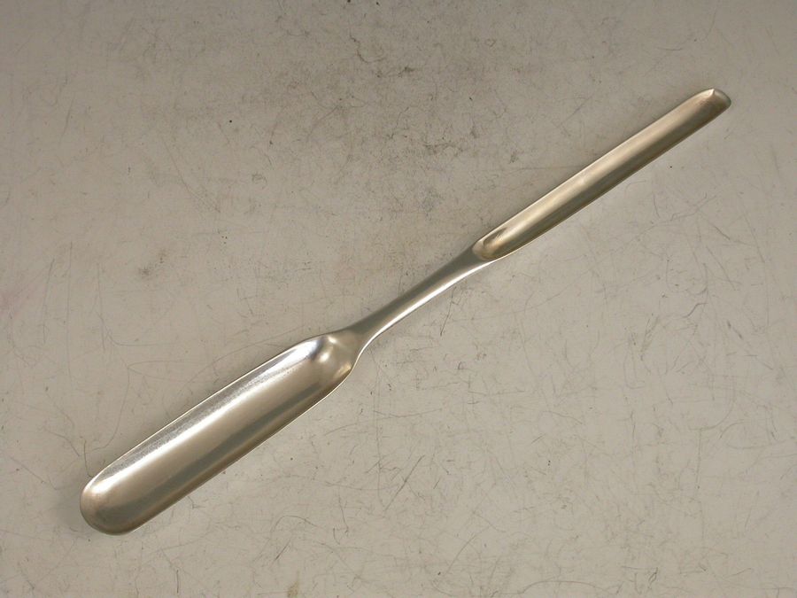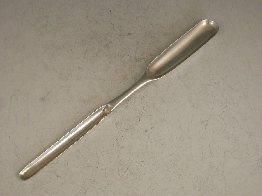 An extremely rare George I Provincial silver Marrow Scoop of standard form with two bowls.