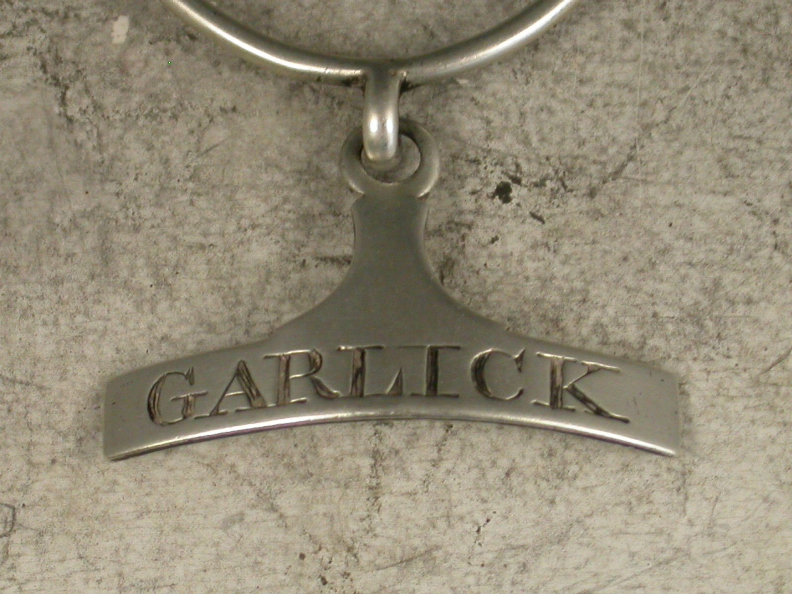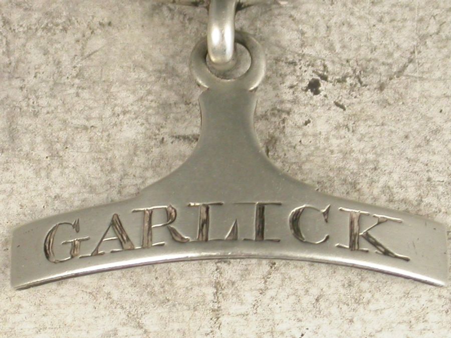 Rare George III Antique Silver Neck Ring Sauce Label 'Garlick'