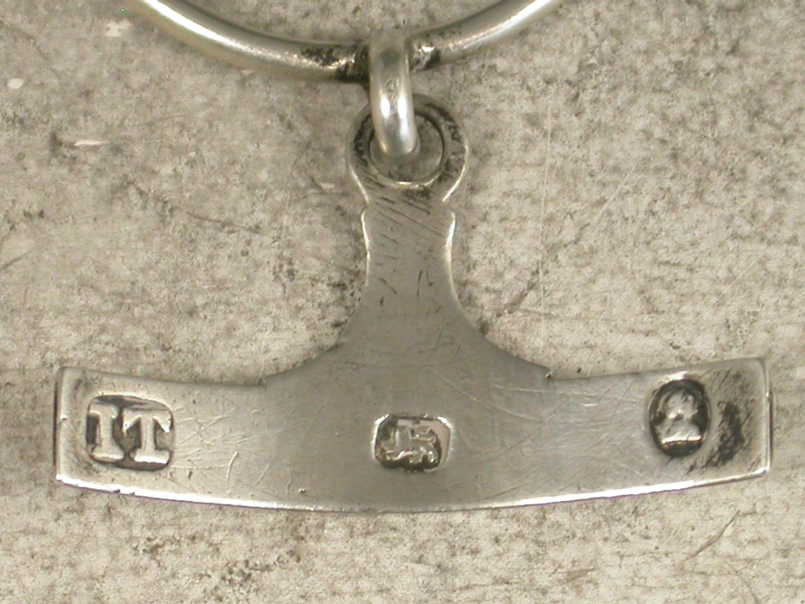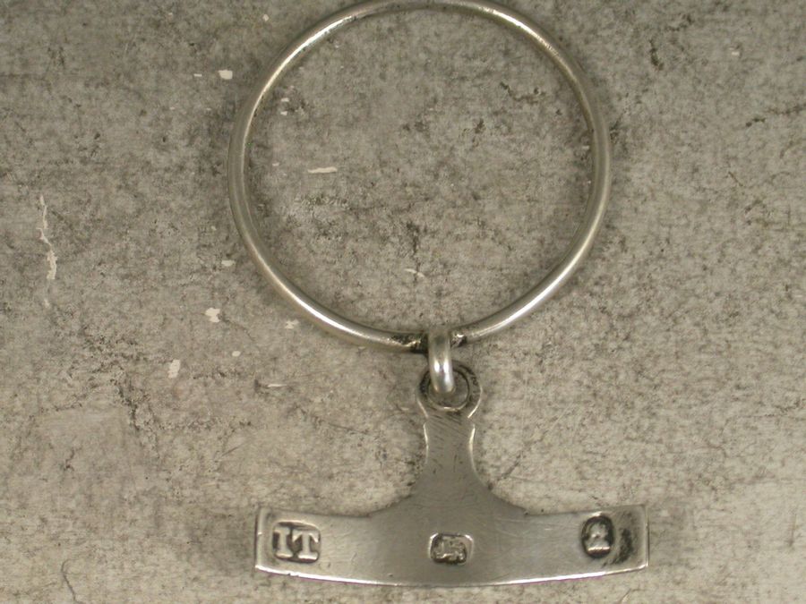 A rare George III silver Sauce Label of plain narrow rectangular form with raised tapering pillar surmount joined to a solid silver wire neck-ring by a single suspension hole, incised for Garlick.