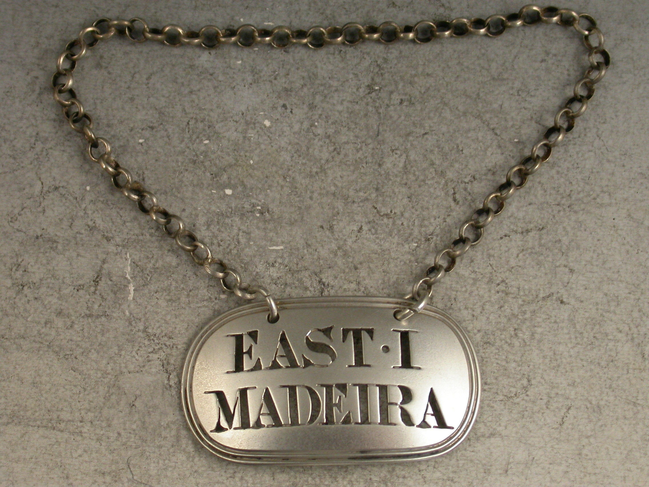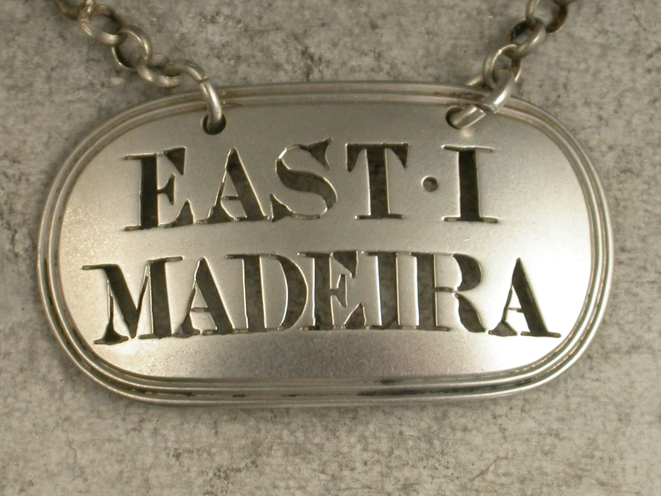 Rare George III Antique Silver Wine Label 'East.I.Madeira'