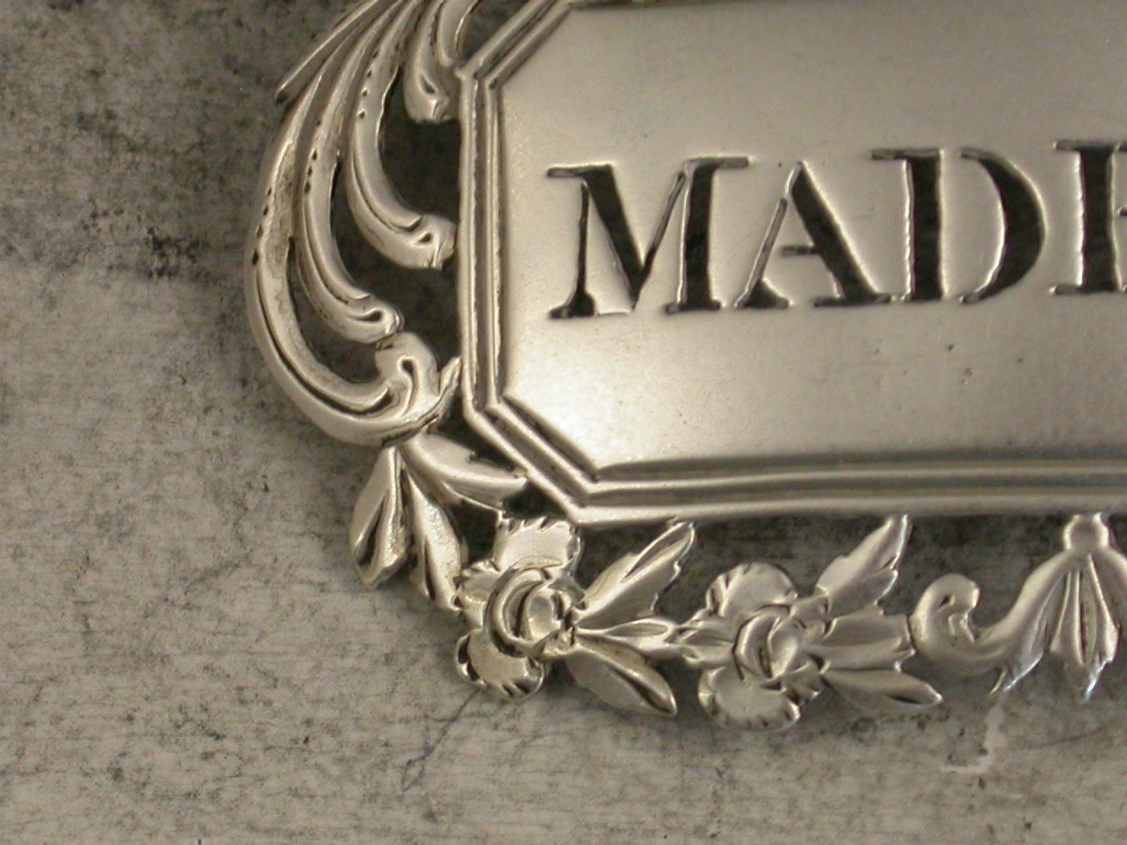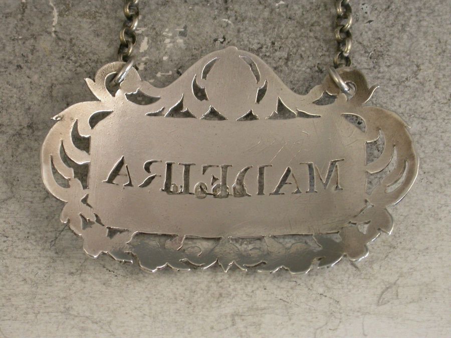 Rare George III Pierced Antique Silver Wine Label 'Madeira'