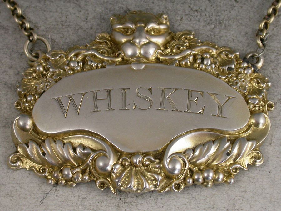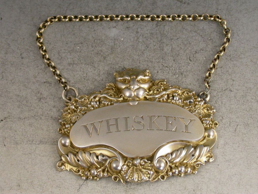Rare George III Provincial Parcel Gilt Wine Label 'Whiskey'