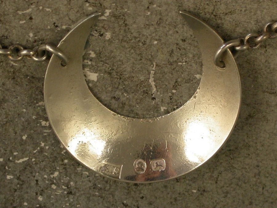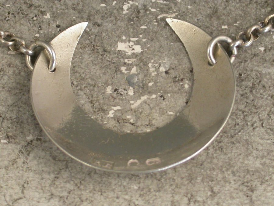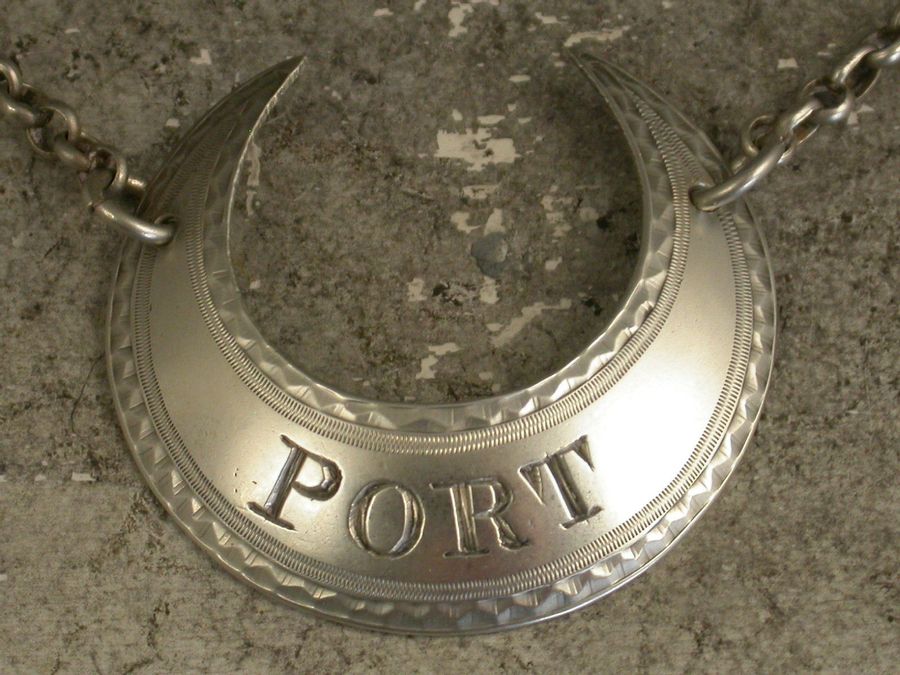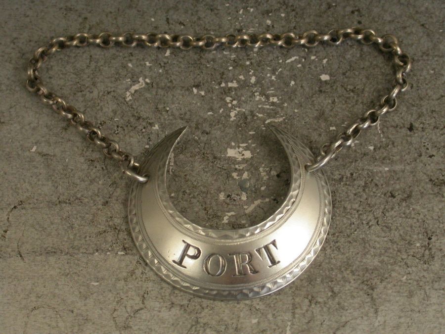 A rare George III Provincial silver Wine Label, of crescent form with bright-cut engraved decoration to the border, incised for Port.