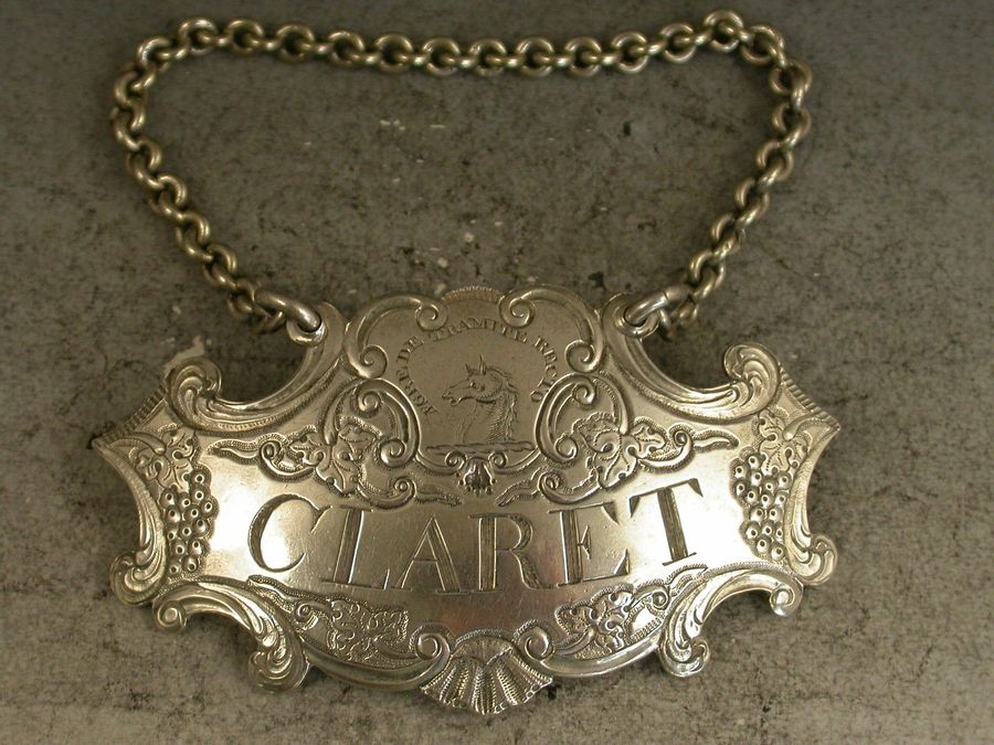 Rare George III Scottish Silver Armorial Wine Label 'Claret' Crest of Horseburgh
