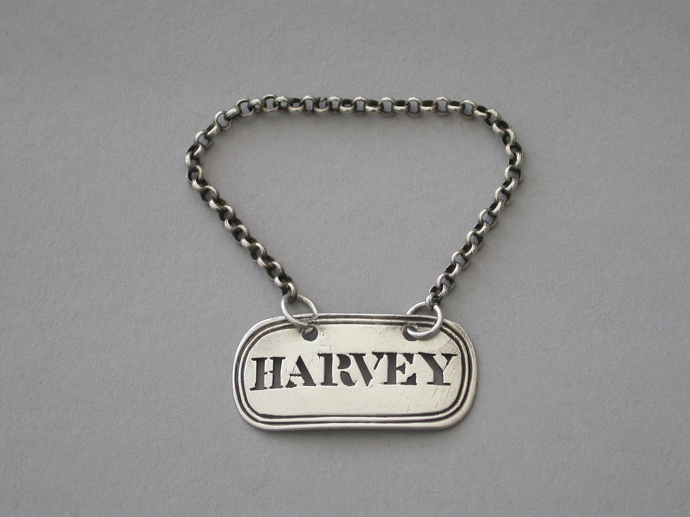 A rare George IV silver Sauce Label of rounded rectangualr form with double reeded border, pierced for Harvey.