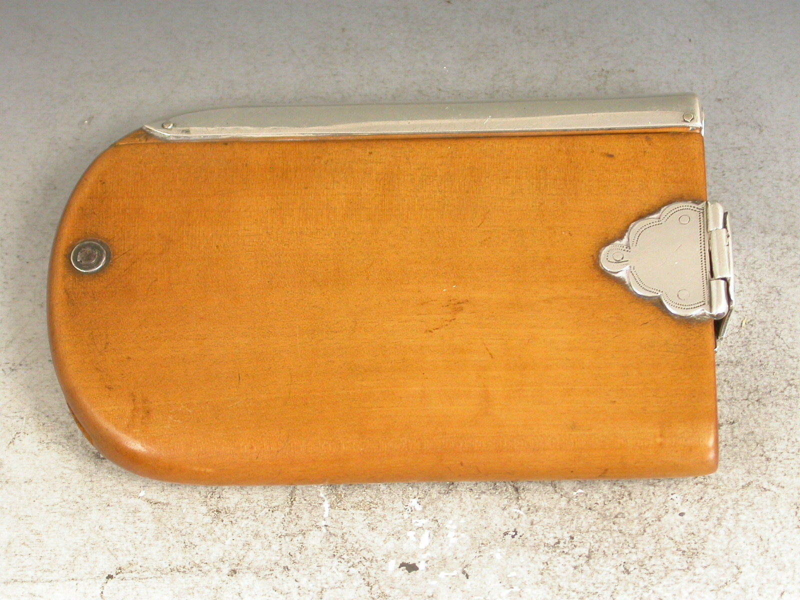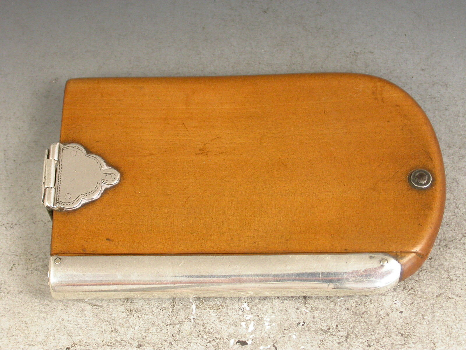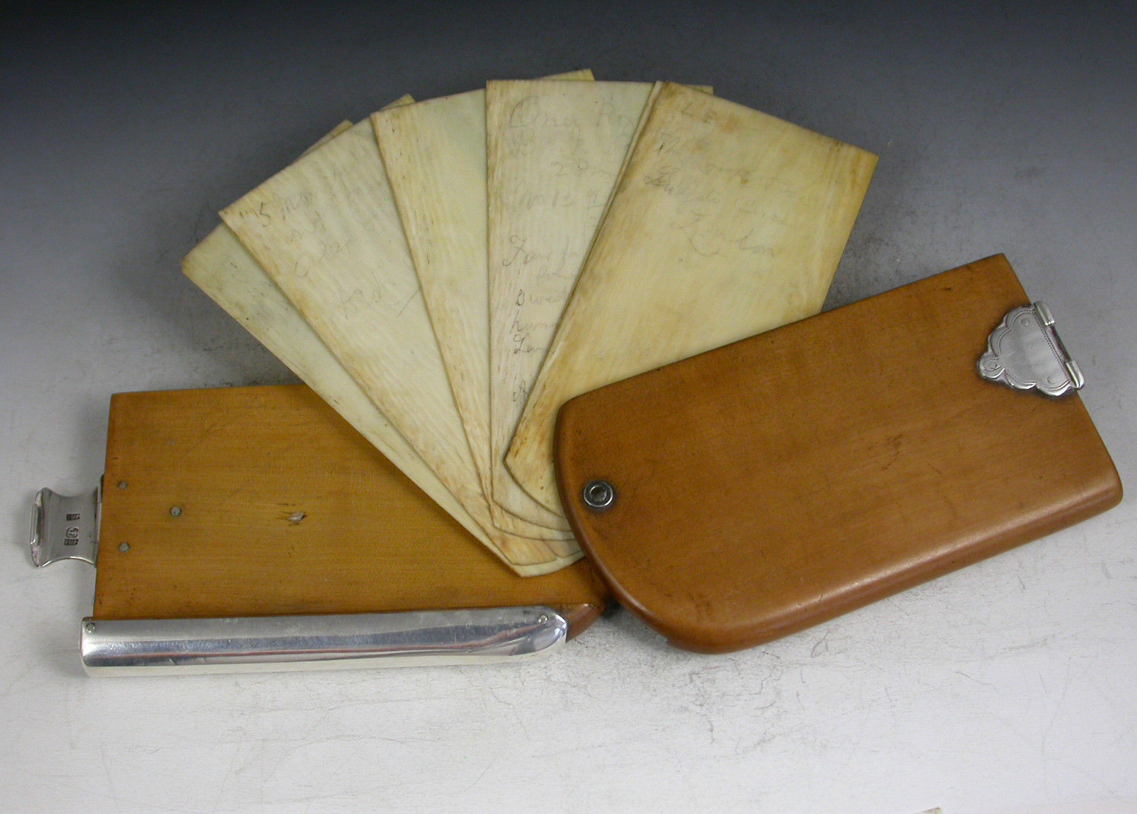 An extremely rare Georgian Scottish Provincial silver mounted sycamore wood and ivory Aide Memoire, the rounded rectangular covers swiveling open to reveal six ivory pages, the hinged silver clasp with scallop shaped mounts and engraved - ""James Hogg, Paisley"". The rounded edge with silver spine recessed to accept a contemporary hexagonal silver sliding pencil.