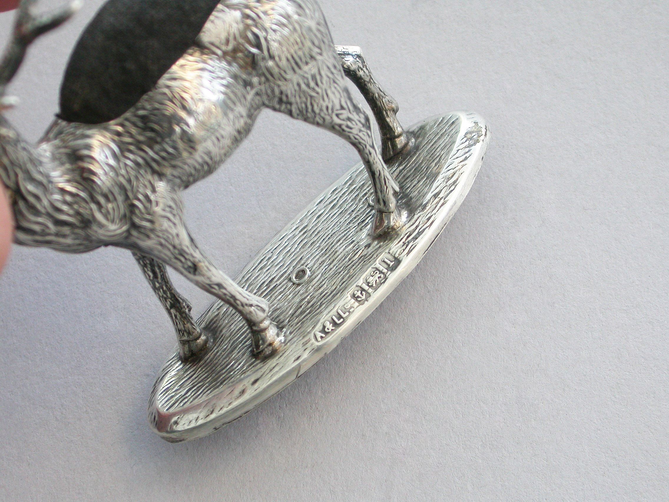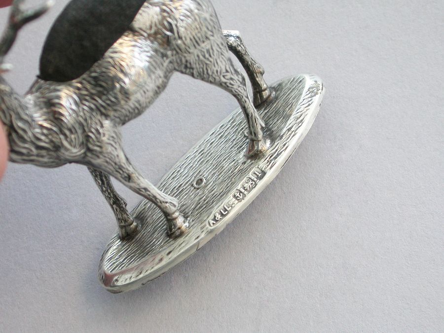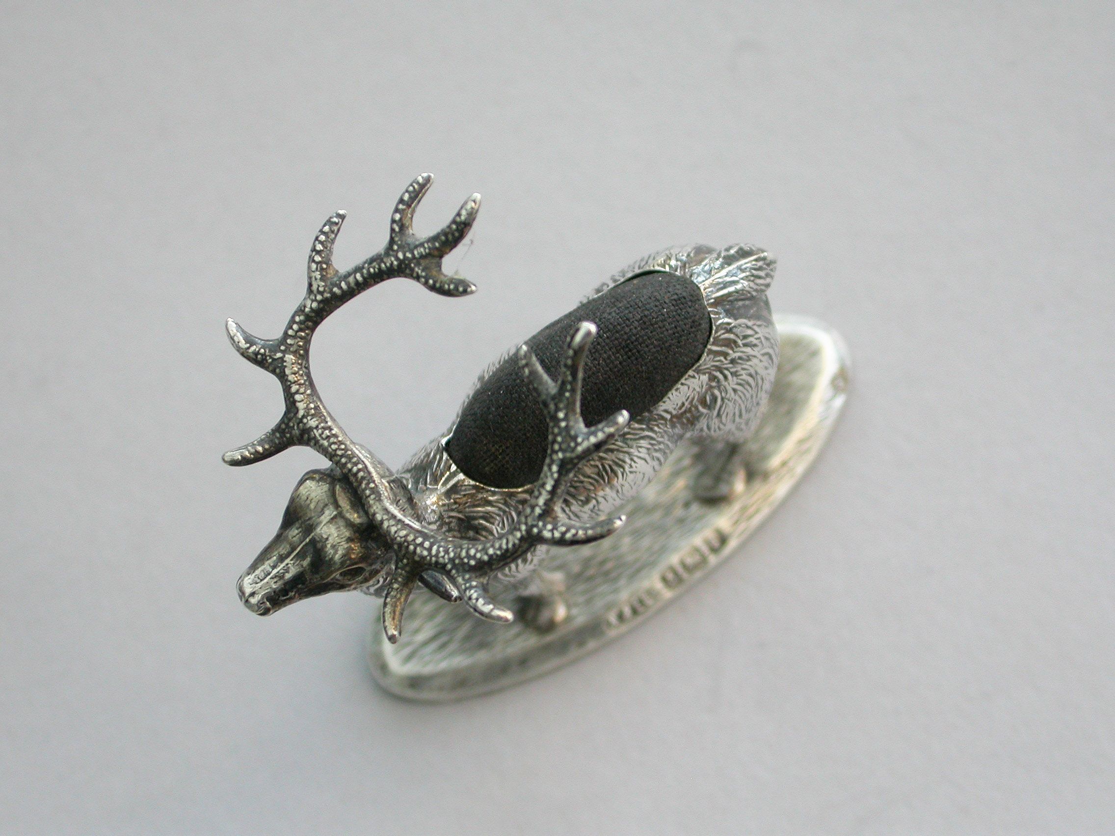 Rare Large Edwardian Novelty Silver Stag Pin Cushion