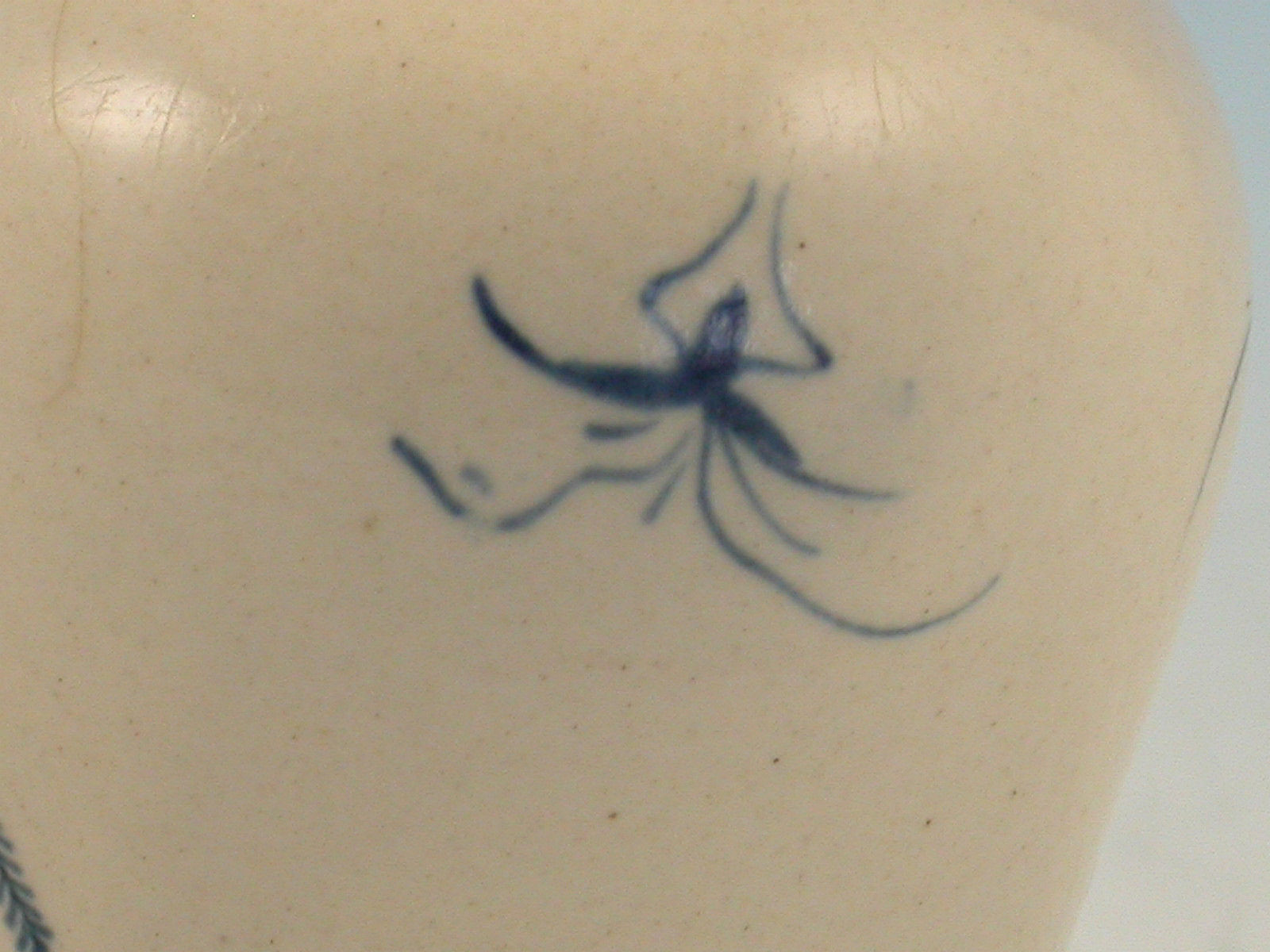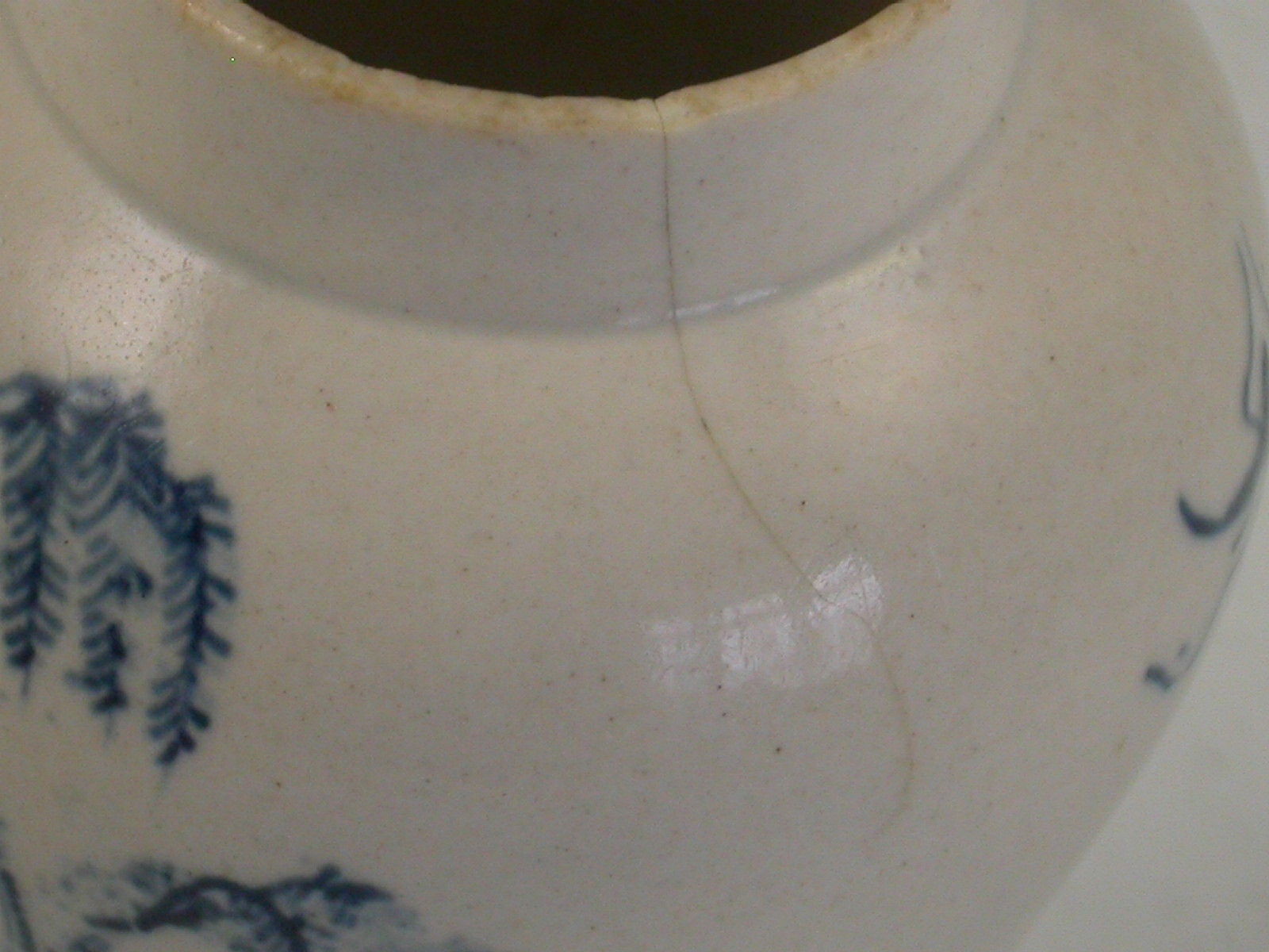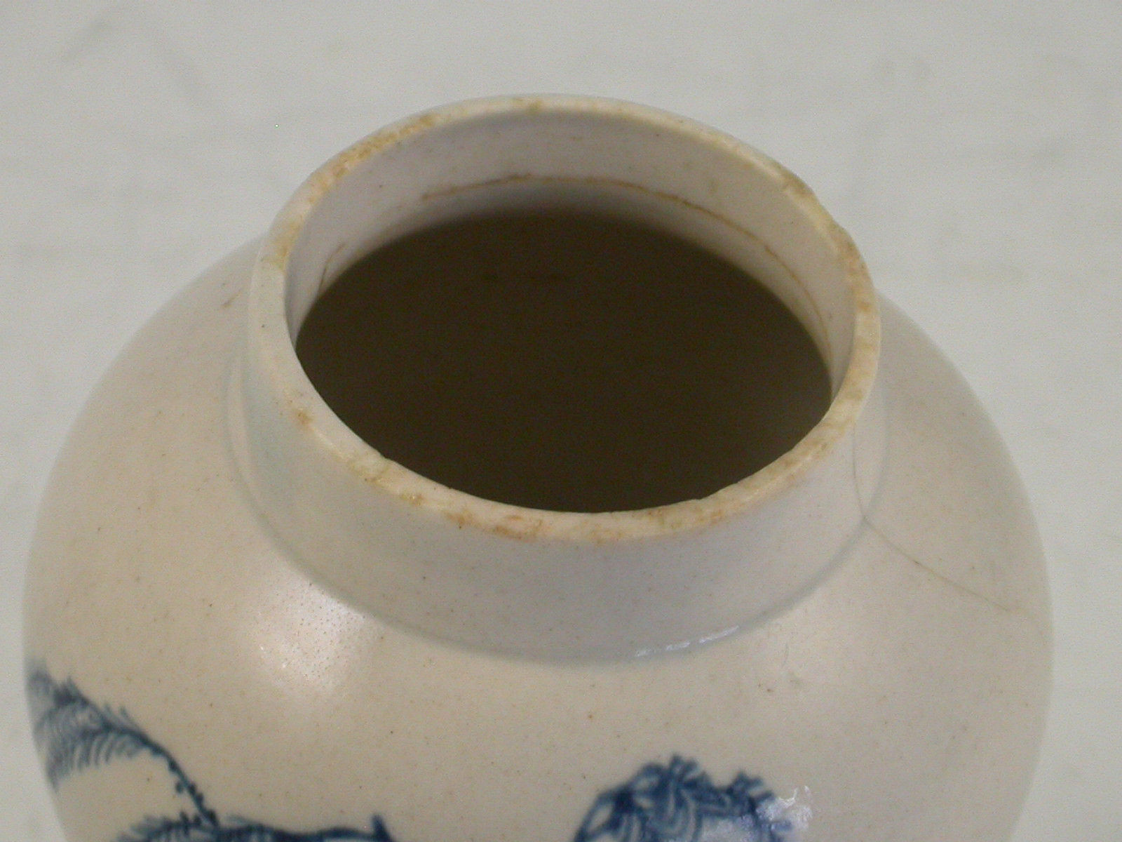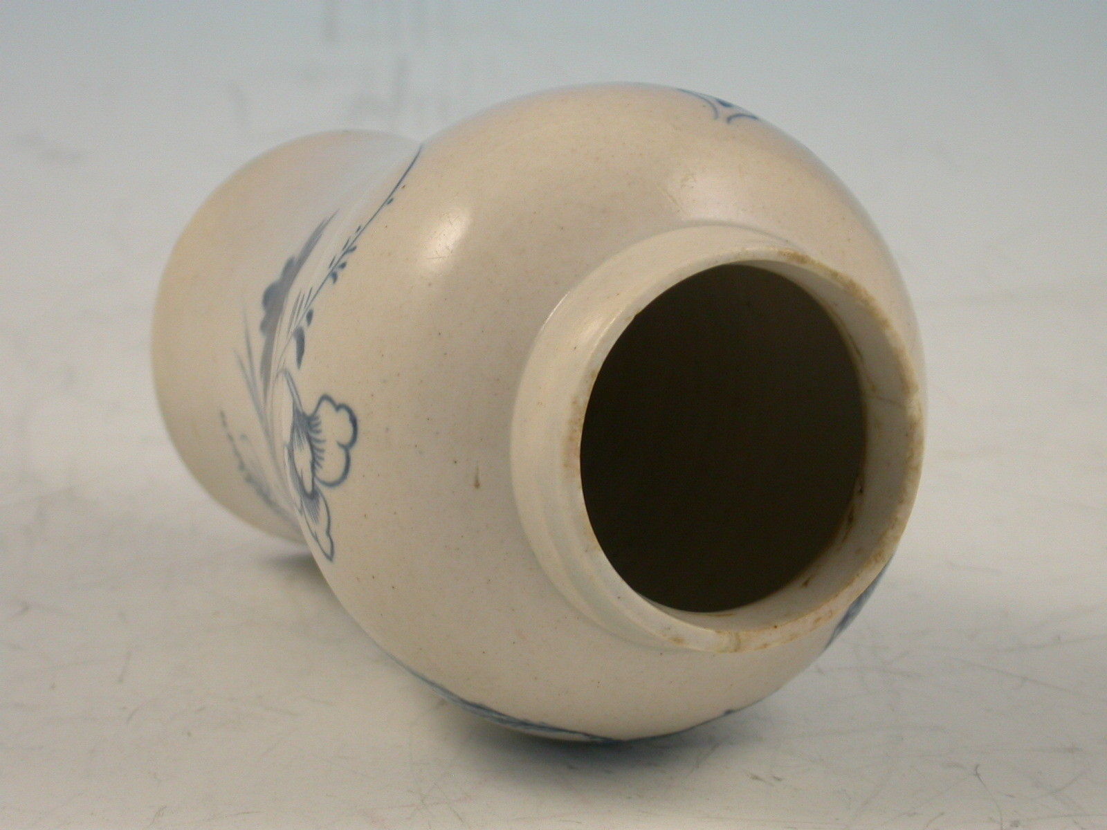 A very rare Liverpool baluster shaped Vase of unusually small size, painted in slate blue with a willow tree in a fenced enclosure and a fork tailed bird on a flower stem and hovering insect.