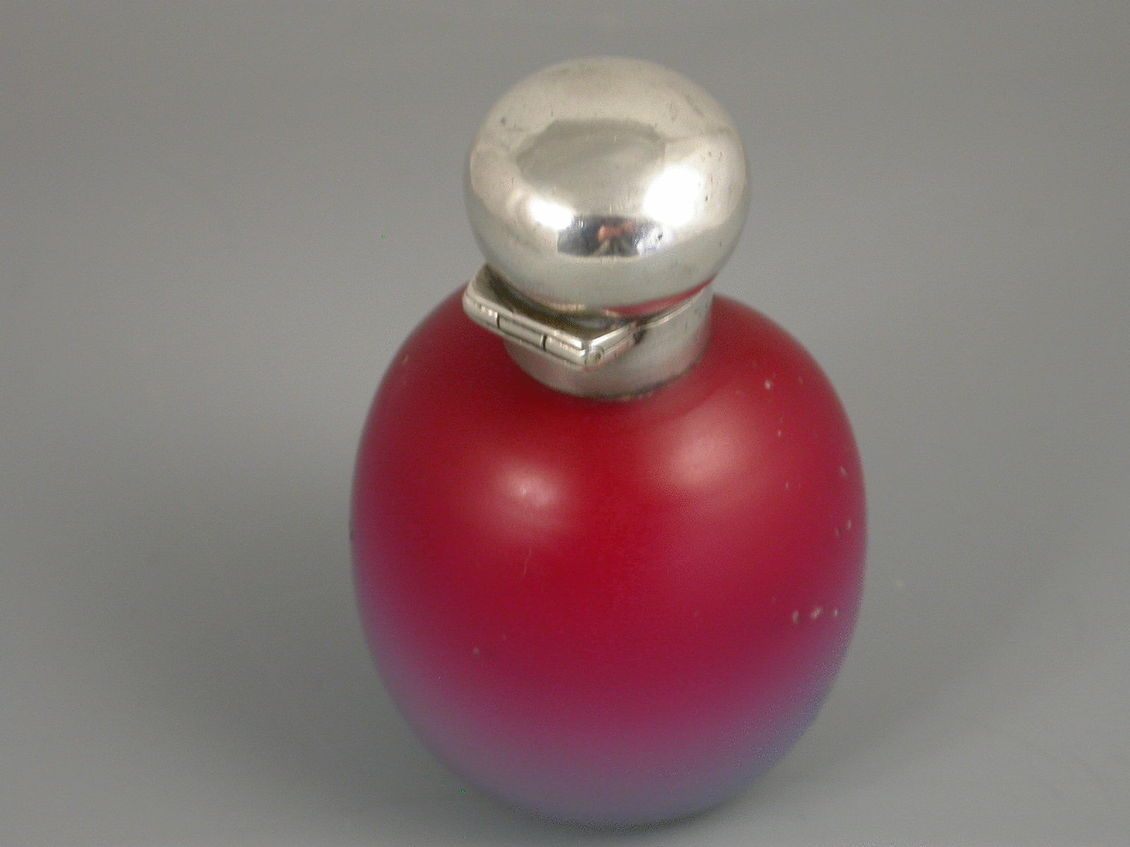 Rare Novelty Silver Mounted Glass Victoria Plum Scent Bottle