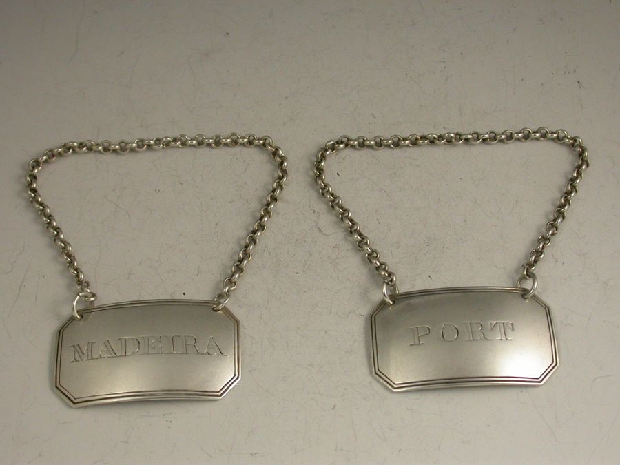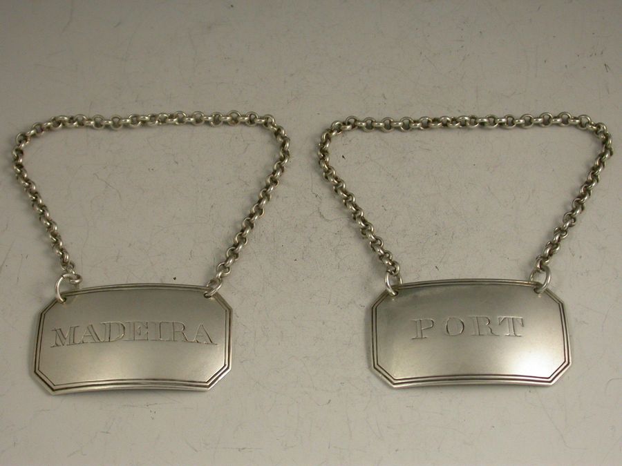 Rare Pair 19th Century Canadian Silver Wine Labels 'Port & Madeira'